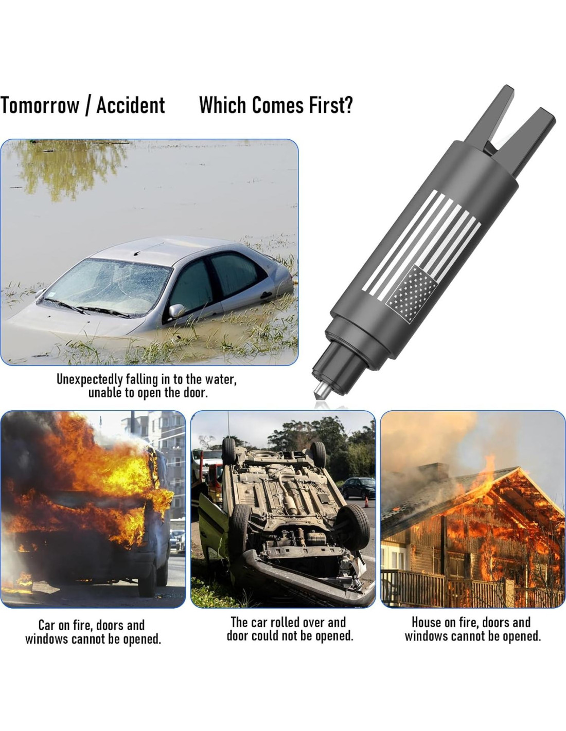 - Juego de 2 Herramientas de Seguridad 2-en-1: Con cabeza de acero tungsteno de dureza 55, rompedor de ventanas con resorte, cuchilla oculta en forma de U. Perfecto para colocación dual en su vehículo o como respaldo.