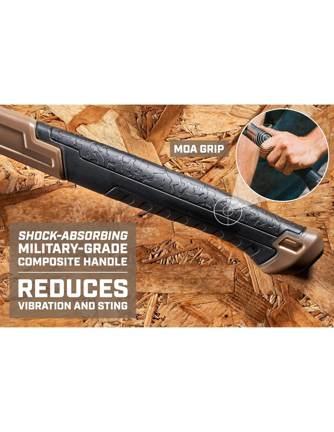 Una elección indiscutible para remodeladores y contratistas, este Martillo de Fibra de Vidrio Spec Ops de 20 oz con Cara Lisa y Garra de Desgarre es ligero con una óptima reducción de vibraciones; el mango está construido con fibra de vidrio y un agarre texturizado en camuflaje, MOA que absorbe el choque y disminuye el dolor. Con una cabeza de acero de alto carbono más ligera y un diseño balísticamente equilibrado, este martillo proporciona swings rápidos, controlados como un francotirador y un poder de golpeo fuerte para clavar clavos con precisión. Para ayudarte a trabajar de manera más segura y precisa, este martillo cuenta con un orificio para cordón compatible con los Sistemas de Retención de Seguridad SRS, una cara lisa para clavar clavos sin dañar y una garra curva para un apalancamiento óptimo durante la extracción de clavos. Y con una garantía de ofrecer una vida útil de capacidad de misión en los sitios de trabajo más difíciles del mundo, este martillo está forjado con acero de alto carbono tratado térmicamente y probado a caídas de 100 pies (30,48 m) para superar el estándar MIL-SPEC. Todas las herramientas Spec Ops están respaldadas por nuestra garantía de por vida sin complicaciones de cinco estrellas, y con cada compra realizada, apoyamos a los héroes de nuestra nación donando el 3% de los ingresos a causas de veteranos y primeros respondedores.