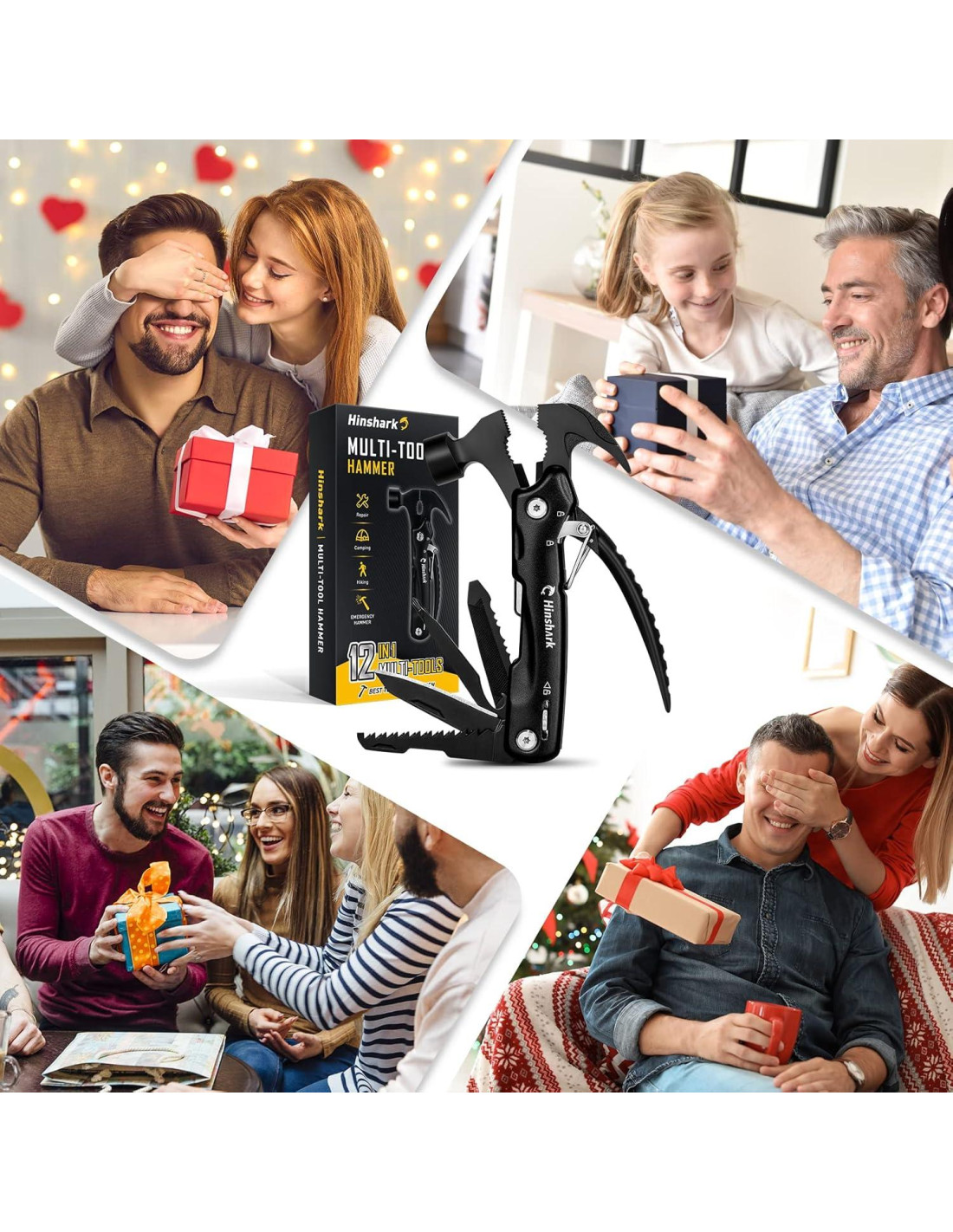 - Regalos para Hombres - El martillo multiherramienta Hinshark es el regalo perfecto de navidad para hombres, papá, abuelo, novio, esposo. El martillo multifuncional tiene 12 funciones, una herramienta multiusos para hombres que es la mejor idea de regalo para camping
