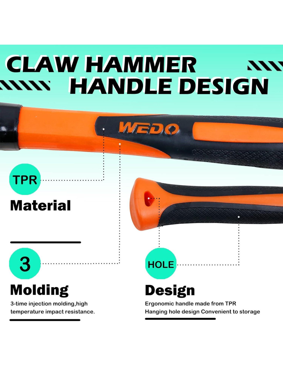 - Diseño: Los Martillos de Garra No Chispeantes de Bronce de Aluminio tienen un mango de plástico que contiene fibra de vidrio comprimida, exterior con material PP y TPR, fuerte y duradero, agarre cómodo. Cabeza con pegamento, libre de la influencia de la humedad, más duradera. Pasador de seguridad para evitar que la cabeza se deslice; extremo con un agujero, fácil de almacenar. Antideslizante y resistente al desgaste. Tecnología de trefilado en frío, alta densidad y fuerte dureza.