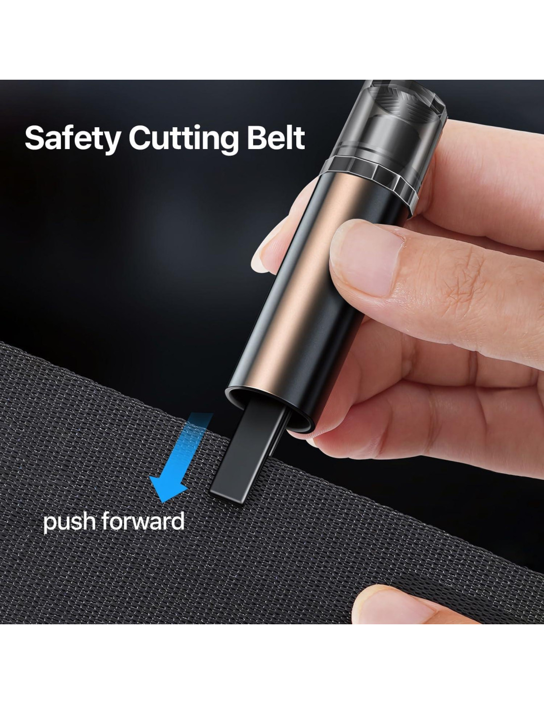 - Eficiente y Fácil de Usar - Con su afilada hoja de acero inoxidable, nuestro cortador de cinturón de seguridad puede cortar fácilmente cinturones atascados, mientras que su cabeza de acero de tungsteno puede romper rápidamente las ventanas del auto con solo un dedo.