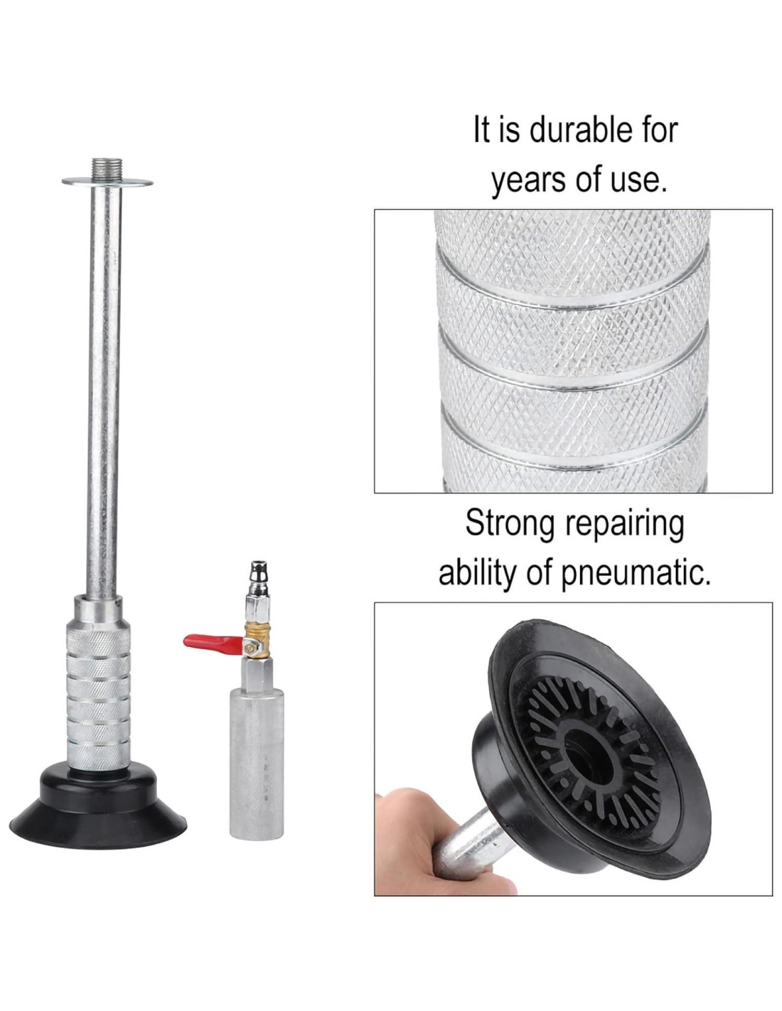 - MARTILLO DE EXTRACCIÓN PESADO: Este martillo de extracción de abolladuras neumático pesado ha sido diseñado para abordar áreas grandes de abolladuras de manera efectiva. Ofrece una solución poderosa para abolladuras sustanciales, asegurando que tu vehículo continúe luciendo lo mejor posible