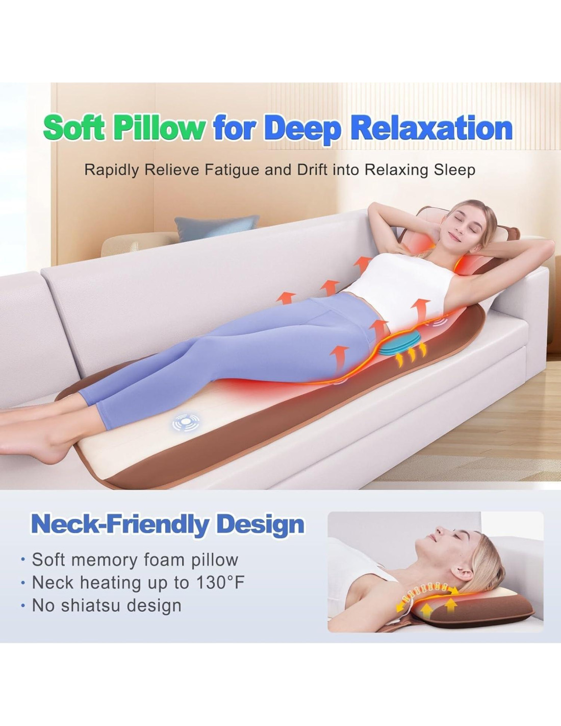 - Almohada de Espuma Viscoelástica Más Completa: Nuestra alfombrilla de masaje de cuerpo completo cuenta con una almohada de espuma viscoelástica más completa y suave. El área del cuello incluye calefacción reconfortante con 2 niveles ajustables, mientras que el diseño sin nodos elimina la necesidad de una solapa, protegiendo tu cuello de incomodidades y asegurando durabilidad a largo plazo.