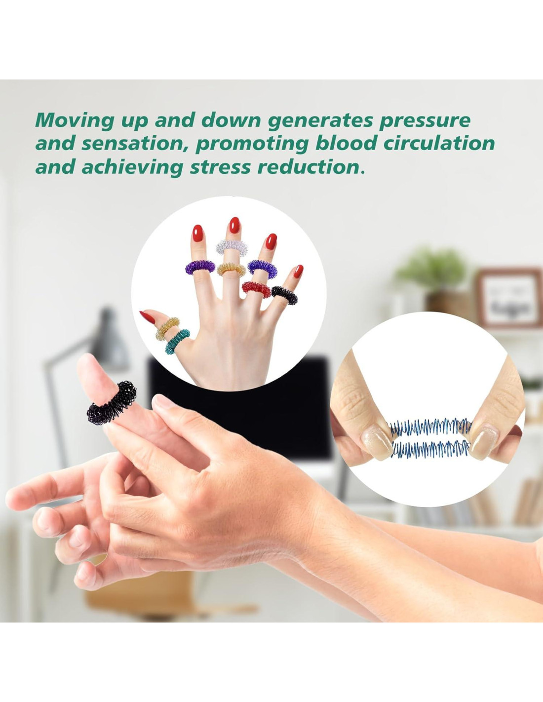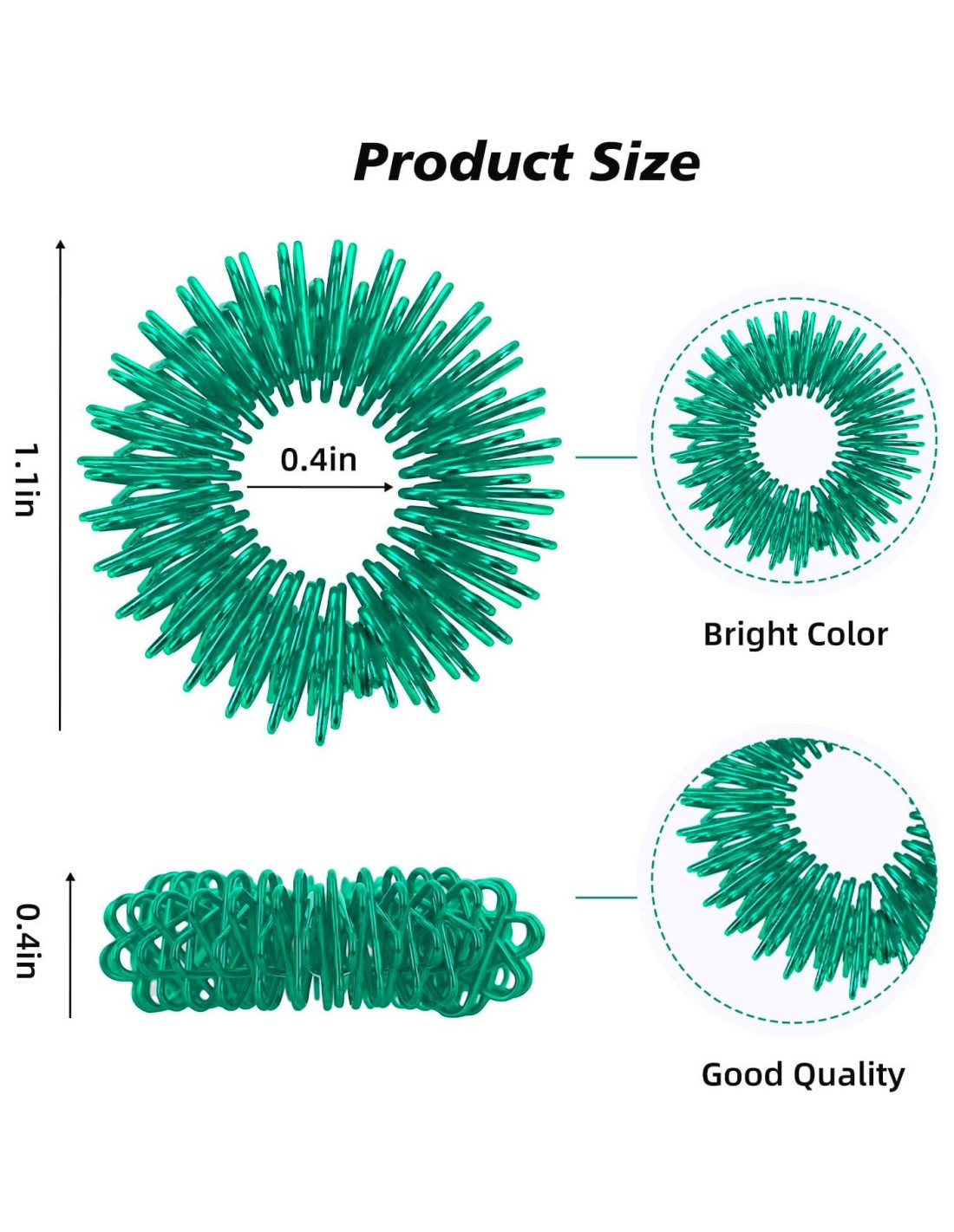 - Alivio Instantáneo del Estrés: Nuestros Anillos Sensoriales Espinosos de Acupresión proporcionan alivio instantáneo del estrés y la tensión. Simplemente póntelos en los dedos y deja que la estimulación sensorial espinosa calme y relaje tu mente y cuerpo