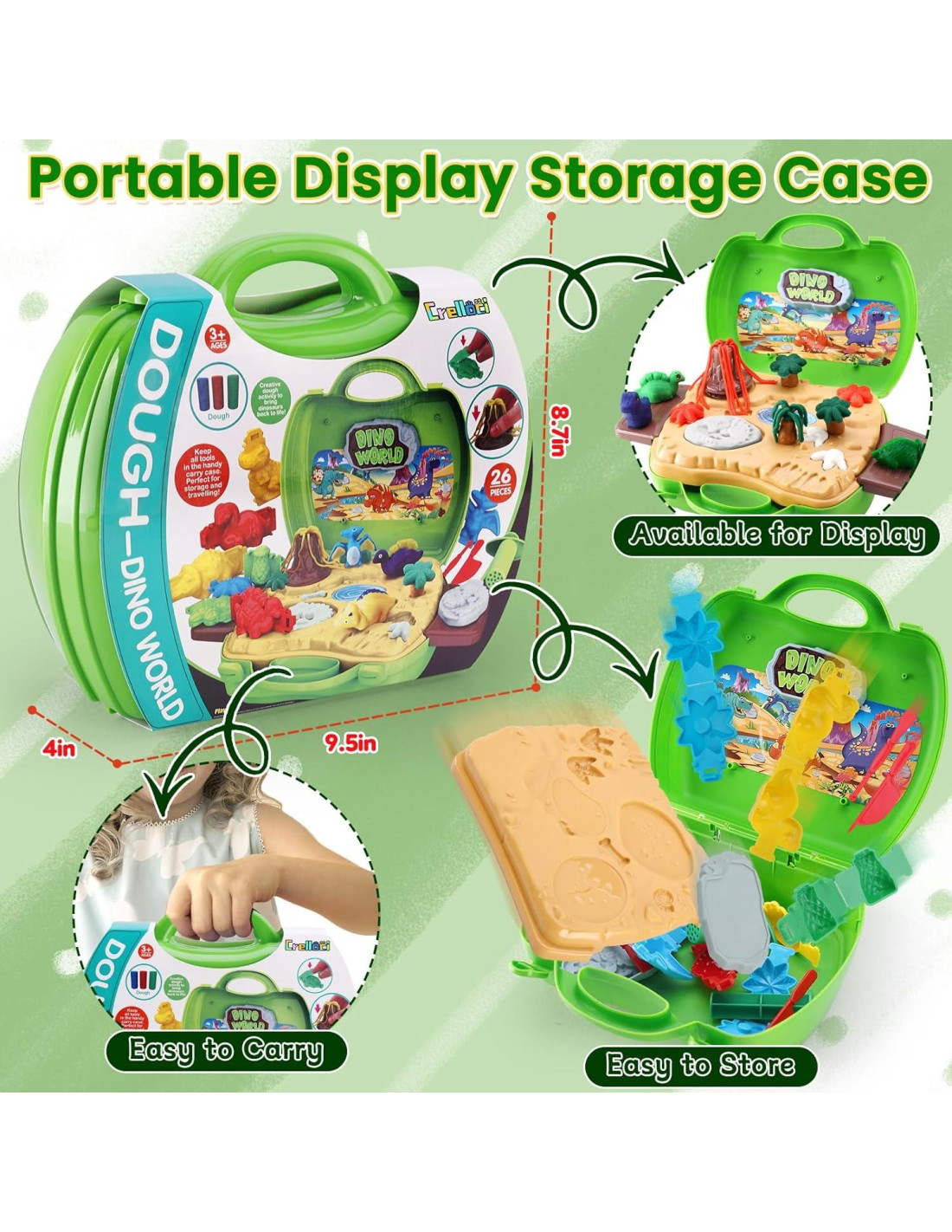 - [Masa de Color en Maletín] - El set de Masa de Color de dinosaurio es un kit de juguete creativo que se adapta perfectamente al maletín portátil reutilizable. Todo se puede guardar dentro, no es desordenado en absoluto, ideal para jugar en casa o llevarlo a cualquier lugar.