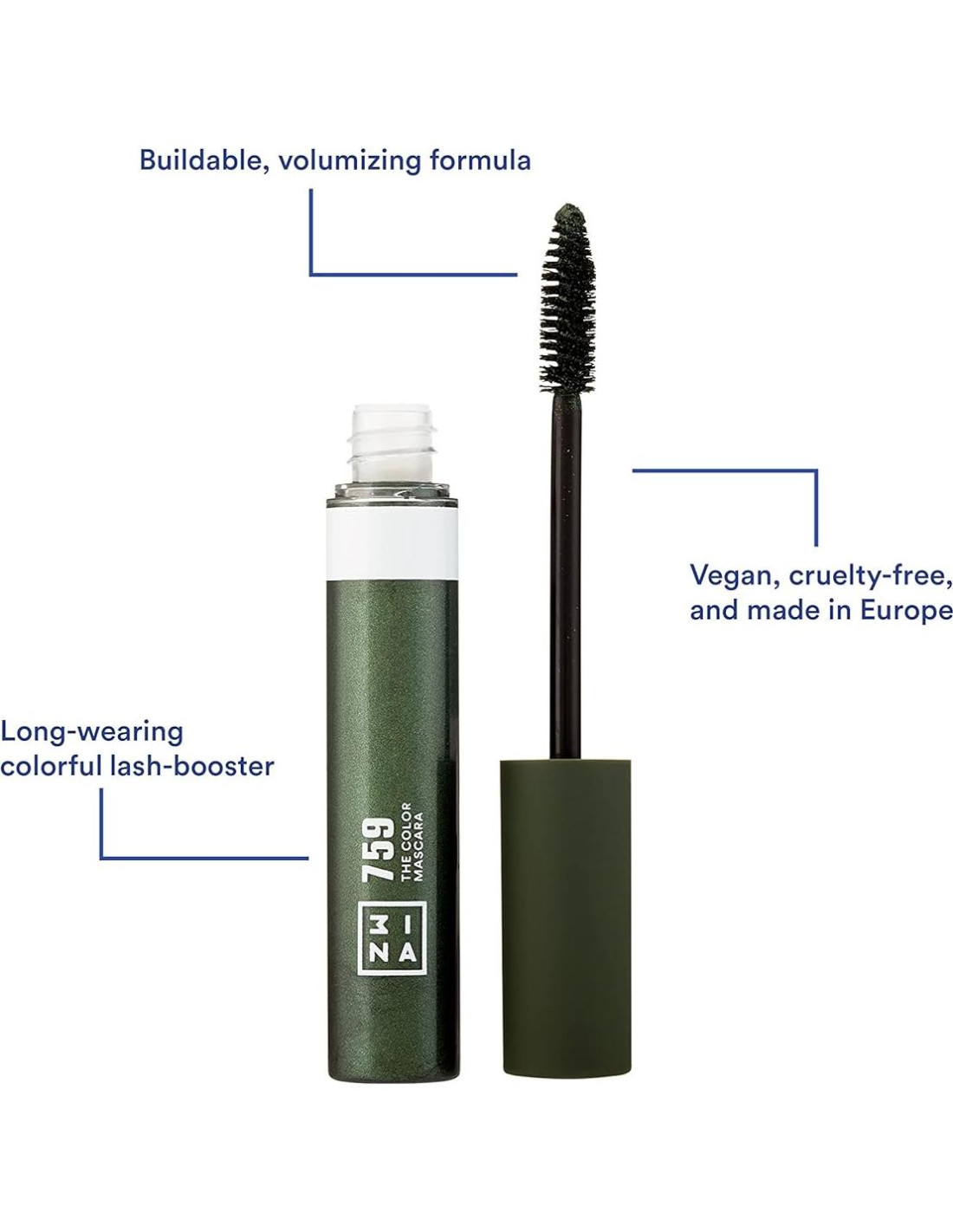 - COLORES INTENSOS Y DIVERTIDOS QUE SON TAN ÚNICOS COMO TÚ. No te conformas con lo aburrido o lo cotidiano, ¿por qué debería hacerlo tu máscara? La Máscara de Color de 3INA en verde oliva cubre tus pestañas con un hermoso tono verde profundo para un look sobrenaturalmente bello.