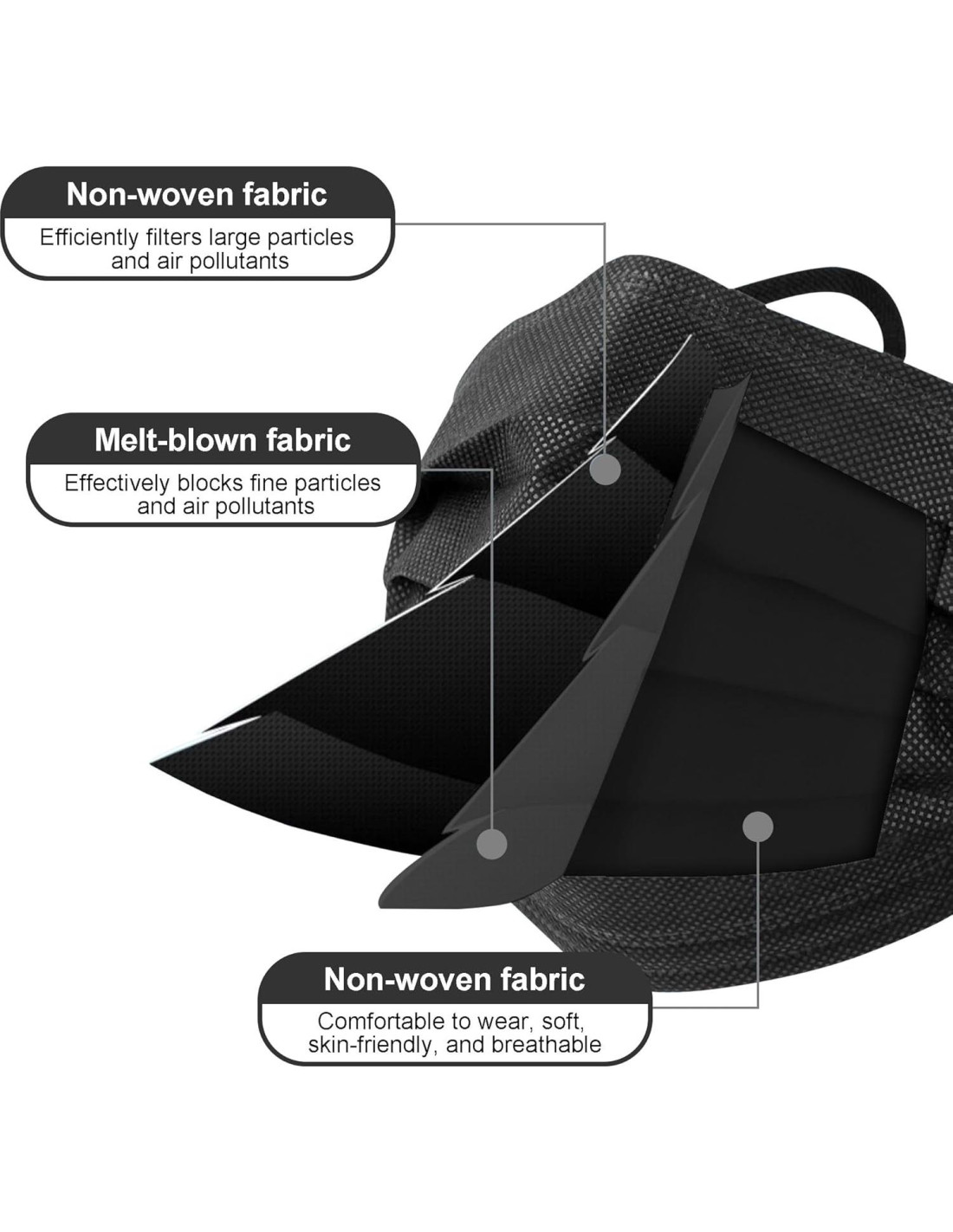 - Protección de Tres Capas con Alta Filtración - Construidas con tela no tejida, tela fundida y una suave capa interior para bloquear eficazmente el polvo, el polen y las partículas en el aire.