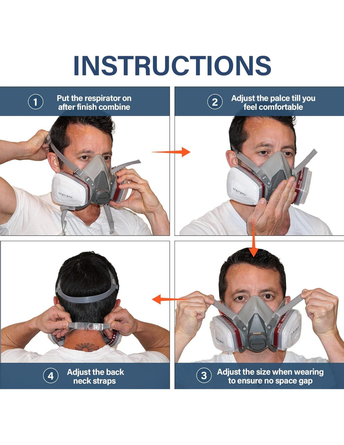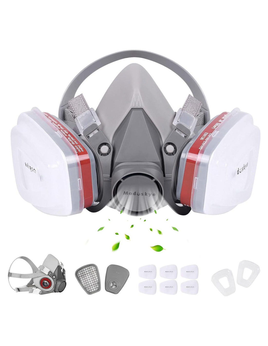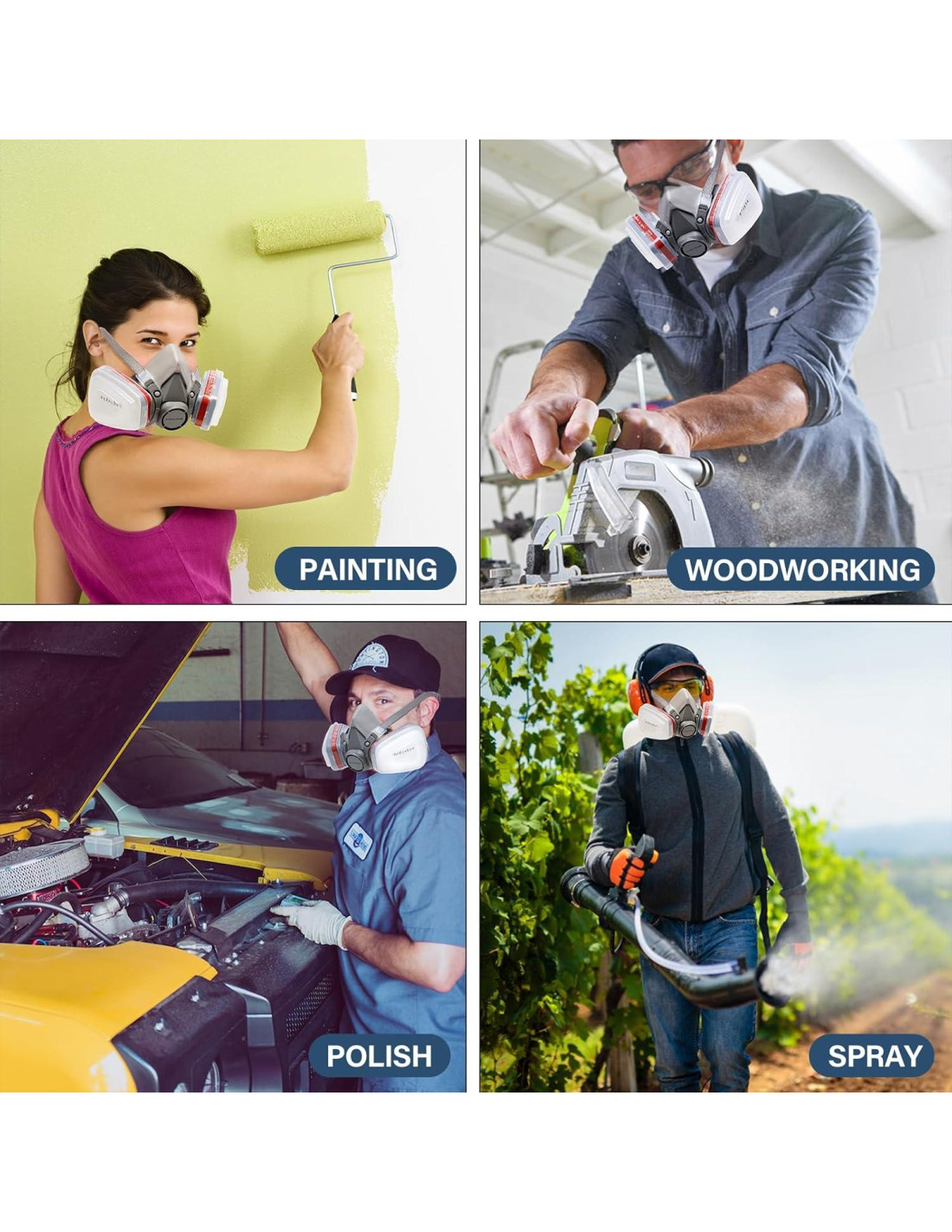 - [Aplicación Amplia] Esta máscara de respirador de media cara es adecuada para trabajos en madera, polvo, humo de fuego, bricolaje, pulido, resina epóxica, pintura, oruga, mina, fábrica, construcción, electricista, mecanizado, maquinaria, instalación de paneles de yeso, industrial, químico, etc. Puede prevenir que las partículas de polvo entren en las vías respiratorias de manera efectiva.