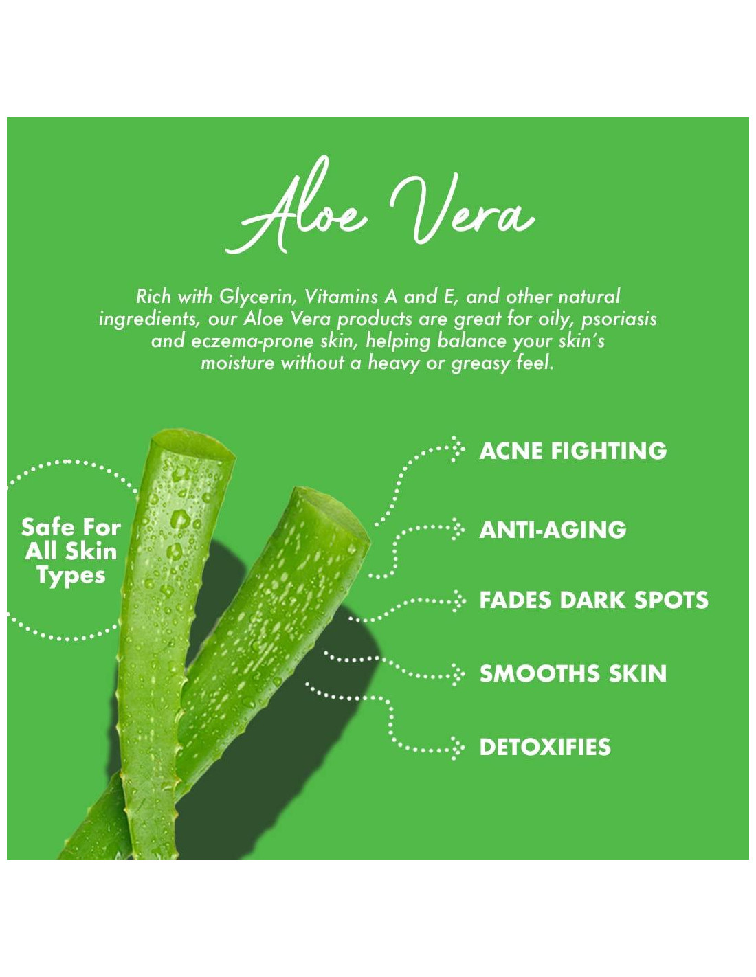 - FORMULADO CUIDADOSAMENTE: Nuestros productos de Hoja de Aloe Vera son libres de Parabenos, Microperlas, Sulfatos y Gluten, mientras contienen ingredientes completamente naturales y limpios que dejan tu piel naturalmente radiante. Seguro para todos los tipos de piel, rico en Extracto de Hoja de Aloe Vera, Aceite de Ricino, Glicerina y otros ingredientes naturales.
