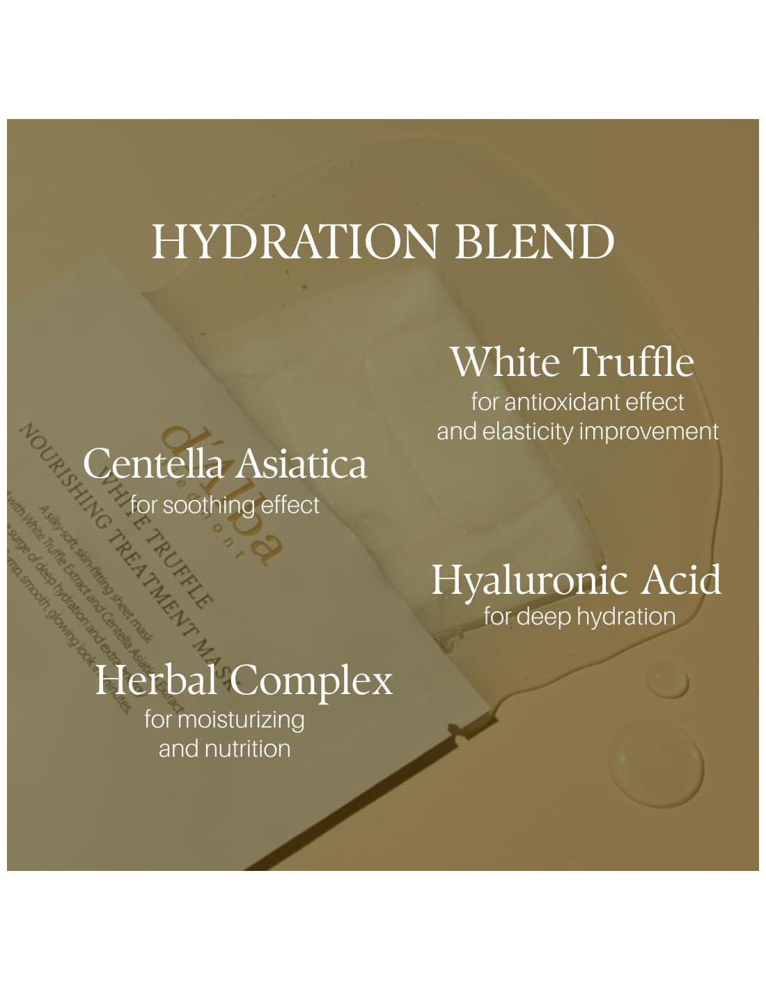 - Trufas blancas premium cuidadosamente extraídas de Piedmont, Italia, infusionadas con tocoferol (vitamina E) hacen del ingrediente característico de d'Alba Trufferol, que es rico en antioxidantes.