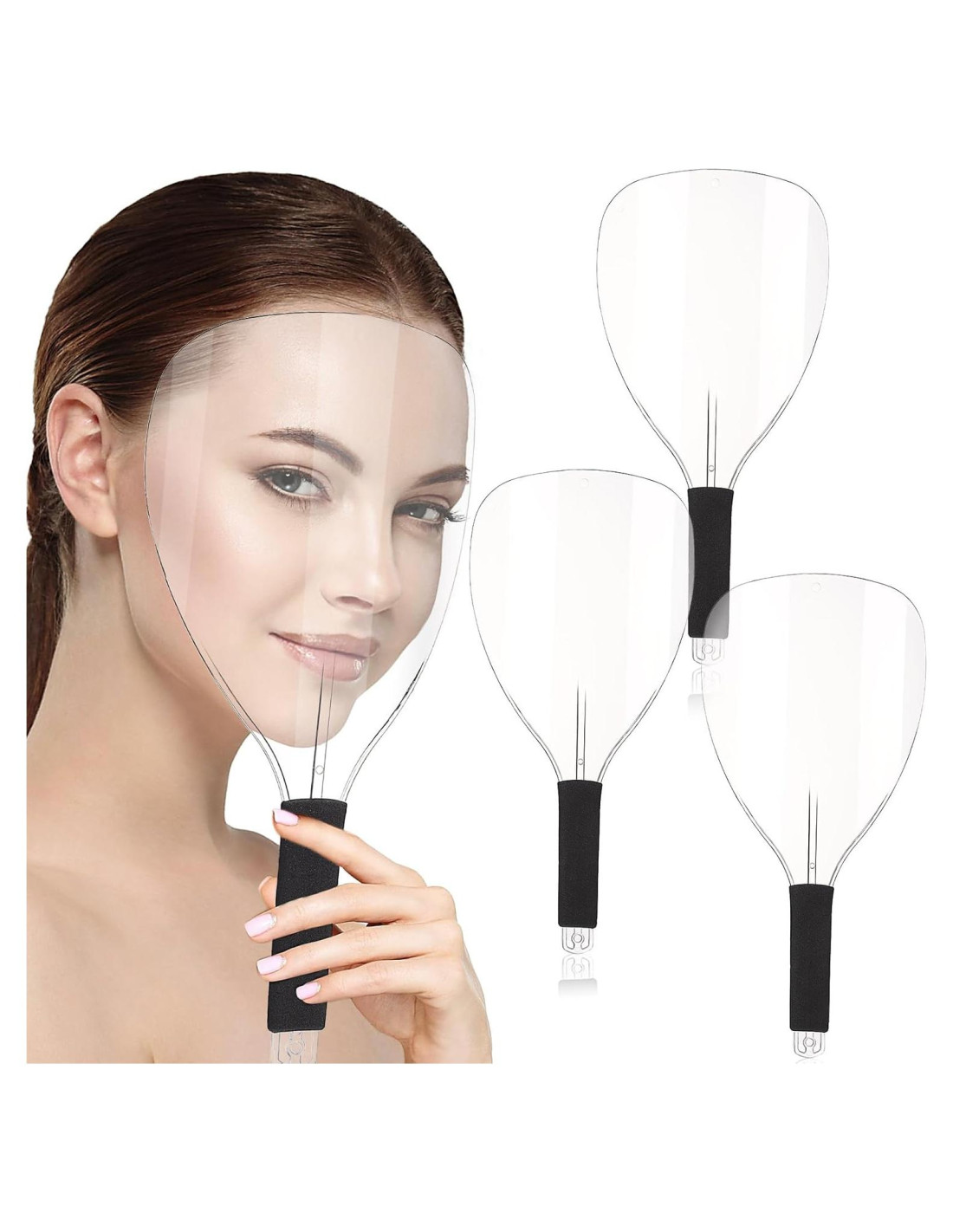 - [Diseño de Tamaño Apropiado] -- El paquete incluye 3PCS de Escudos Faciales para Barbería, que miden aproximadamente 33cm x 16cm, y el mango mide aproximadamente 10cm de longitud. El tamaño del escudo se adapta a la forma de la mayoría de las caras. Cada detalle es íntimo y meticuloso