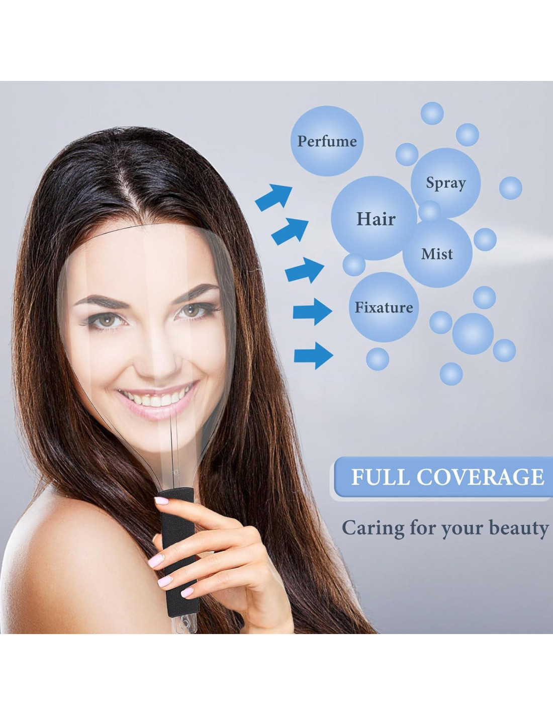 - [Amplia Aplicación] -- El escudo de máscara de salón ofrece protección facial al usar hairspray, otros aerosoles, perfumes, peluquería o corte de cabello, reduciendo la inhalación de aerosoles y otras sustancias. Adecuado tanto para uso en casa como en salón