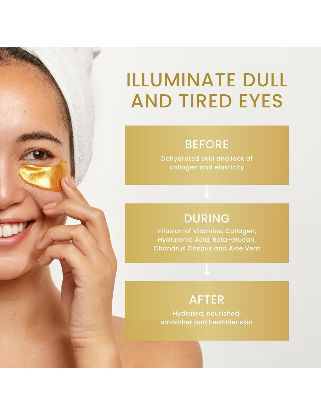 - Tratamiento para debajo de los ojos de oro de 24K, parches de gel para los ojos, parches para debajo de los ojos círculos oscuros: Experimenta la solución definitiva para eliminar la hinchazón y rejuvenecer tus ojos con nuestro lujoso tratamiento para debajo de los ojos de oro de 24K.