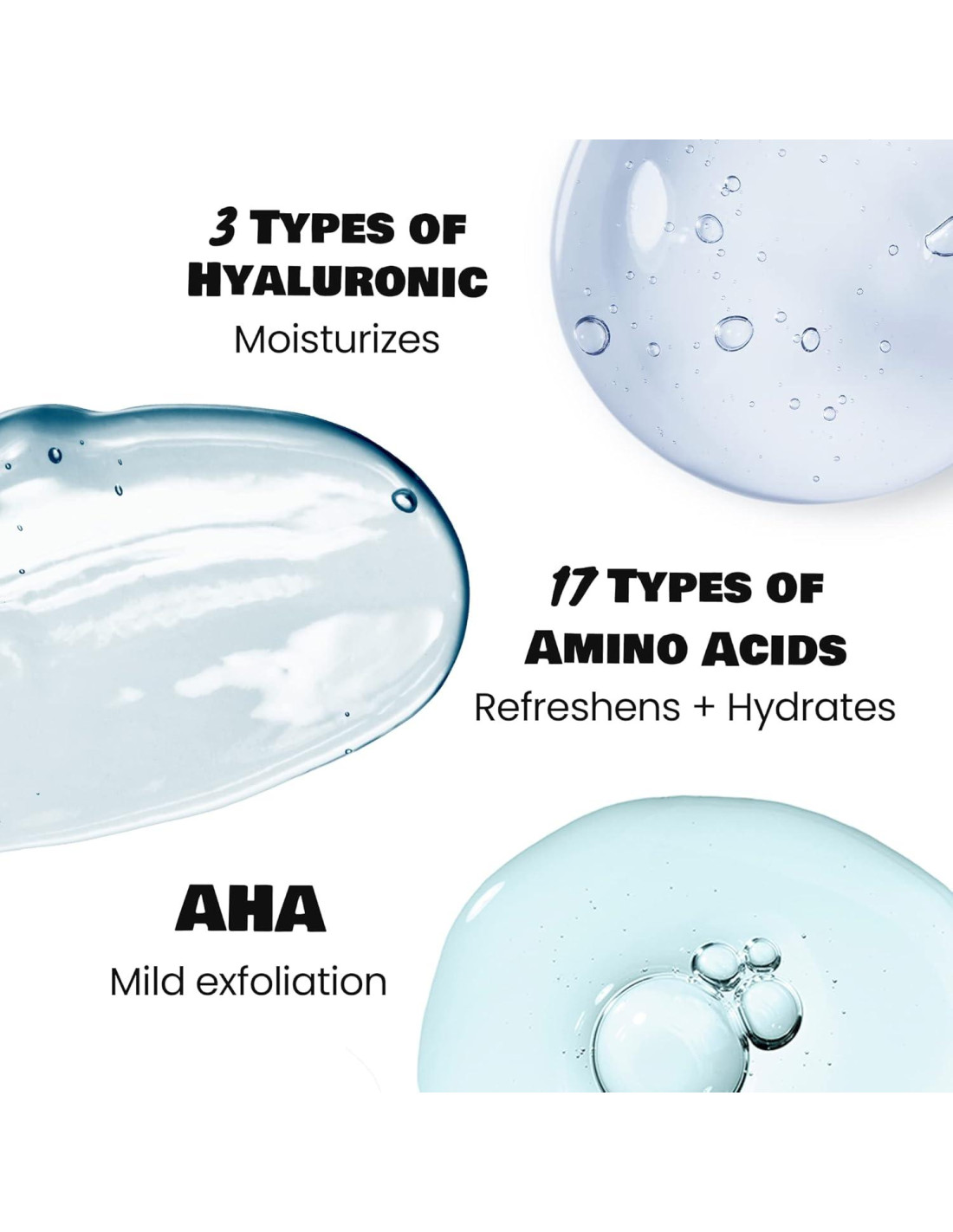 - FÓRMULA REFRESCANTE PARA LA PIEL. Cargada con 3 tipos de ácido hialurónico, AHA y aminoácidos, esta mascarilla de belleza para la cara refresca y hidrata expertamente la piel áspera y seca. Su fórmula nutritiva proporciona un impulso revitalizante de humedad que dejará tu piel sintiéndose profundamente hidratada y refrescada.