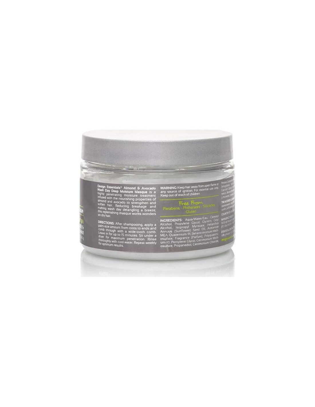 El cabello hermoso merece hidratación desde el principio. Presentamos nuestra Mascarilla de Hidratación Profunda de Almendra y Aguacate Design Essentials Natural. Este tratamiento de hidratación de alta penetración está infusionado con las propiedades nutritivas de los aceites de Almendra y Aguacate para fortalecer y suavizar el cabello. Combate el cabello seco con esta mascarilla reconstituyente. Funciona maravillas mientras reduce la rotura y hace que el desenredado en el día de lavado sea un placer. Beneficios - Fortalece el cabello mientras retiene una intensa hidratación - Mejora la elasticidad del cabello y añade un brillo luminoso - Facilita el proceso de desenredado y mejora la manejabilidad del cabello - Libre de parabenos, ftalatos, siliconas y gluten Ingredientes Clave - ALMENDRA Y AGUACATE nutren, fortalecen y proporcionan intensa hidratación - ACEITE DE GIRASOL proporciona hidratación, suavidad, brillo y protección Cómo Usar 1. Después de lavar con champú, aplica una cantidad del tamaño de la palma desde las raíces hasta las puntas. 2. Desenreda con un peine de dientes anchos. 3. Deja actuar hasta 15 minutos. Siéntate bajo un secador para una máxima protección. 4. Enjuaga bien con agua fría. Repite semanalmente para obtener resultados óptimos.