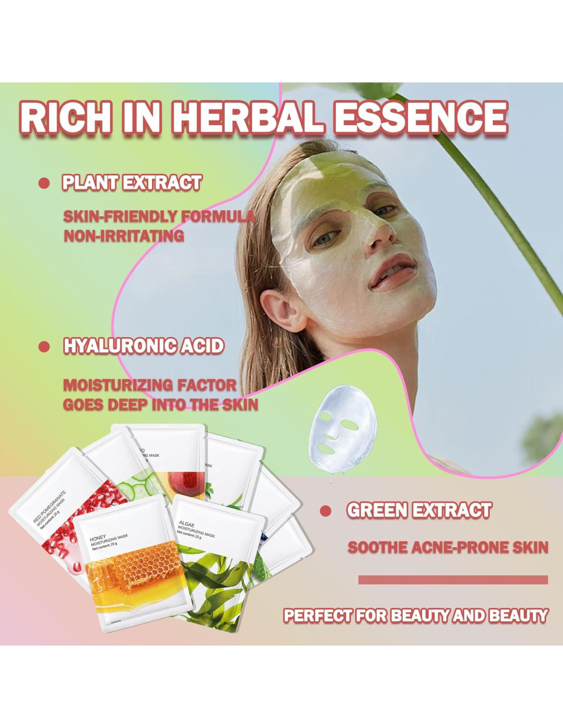 - [Adecuado para Todo Tipo de Piel] El set de mascarillas faciales es adecuado para una variedad de tipos de piel, incluyendo 8 fragancias diferentes de mascarillas de hoja, una variedad de su elección.