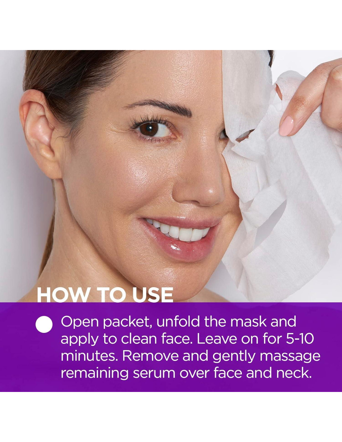 - Rejuvenecimiento Instantáneo y Firme: Para resultados instantáneos, abre el paquete, despliega la máscara y aplícala en el rostro limpio. Deja actuar durante 5-10 minutos. Retira y masajea suavemente el suero restante sobre el rostro y el cuello. No es necesario enjuagar.
