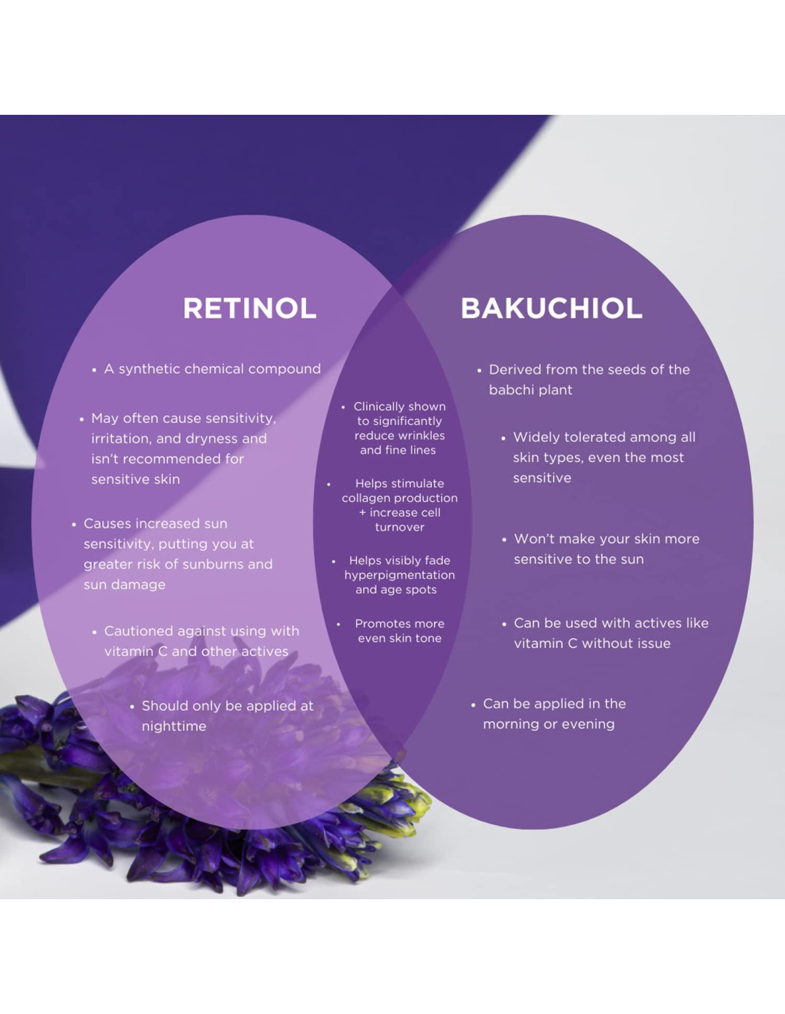 - Retinol de Origen Vegetal: El Resveratrol Q10 y el Bakuchiol ayudan a hidratar y reponer la piel, reducen la apariencia de líneas finas y arrugas, y promueven un cutis más levantado y rejuvenecido.