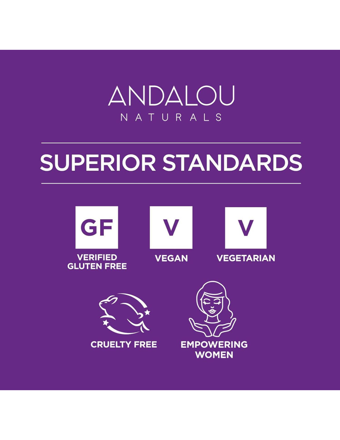 - Ingredientes de la Naturaleza: Los productos de Andalou Naturals son 98% derivados de la naturaleza y vegetarianos con una gran oferta vegana. Además, somos libres de gluten y libres de crueldad; nunca probamos en animales.