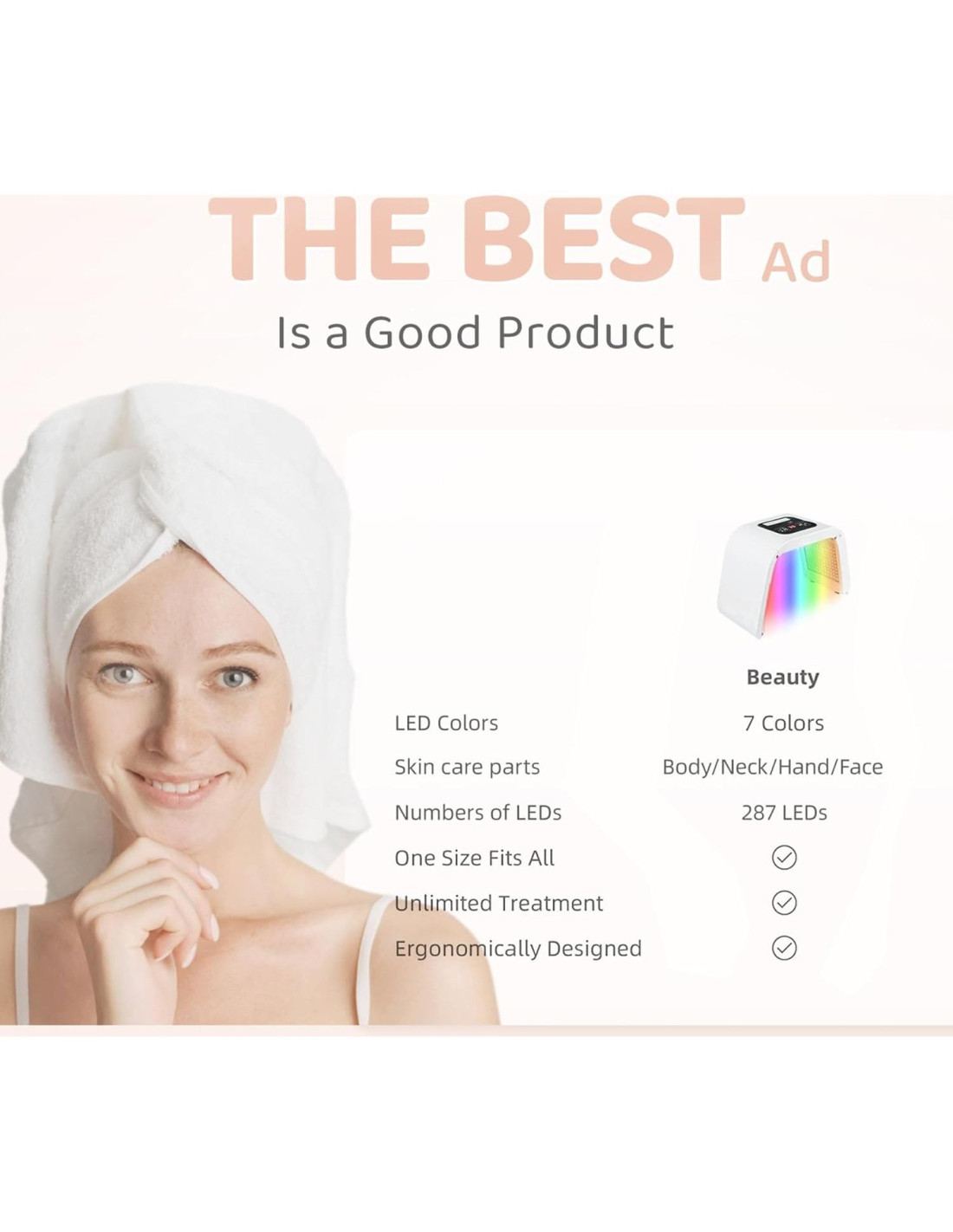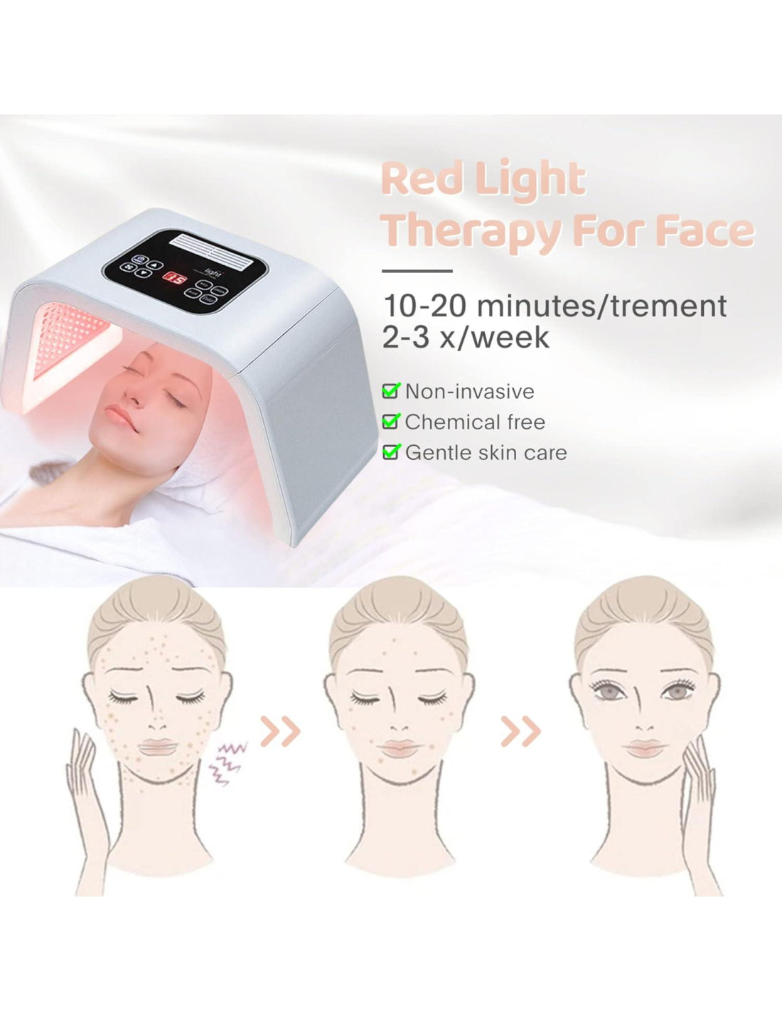 cree que el cuidado de la piel es para hacerse más confiado. Utilice terapia de luz LED profesional para hacer que el cuidado de la piel sea más fácil y eficiente. Recuerde cuidar bien su piel y ser la más hermosa de sí misma. Puede ser utilizado por hombres y mujeres. A través de las perlas LED, la energía penetrará en la piel, mejorando la piel.