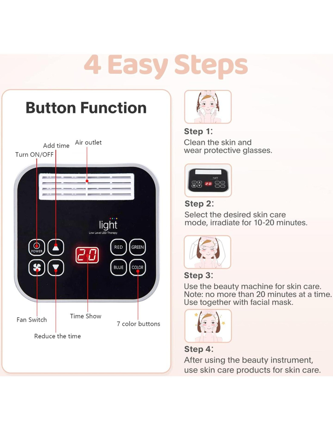 - [Máscara Facial LED] - Estamos comprometidos a brindar a nuestros clientes la mejor experiencia de compra. Si encuentra algún problema durante el uso, lo resolveremos lo antes posible.