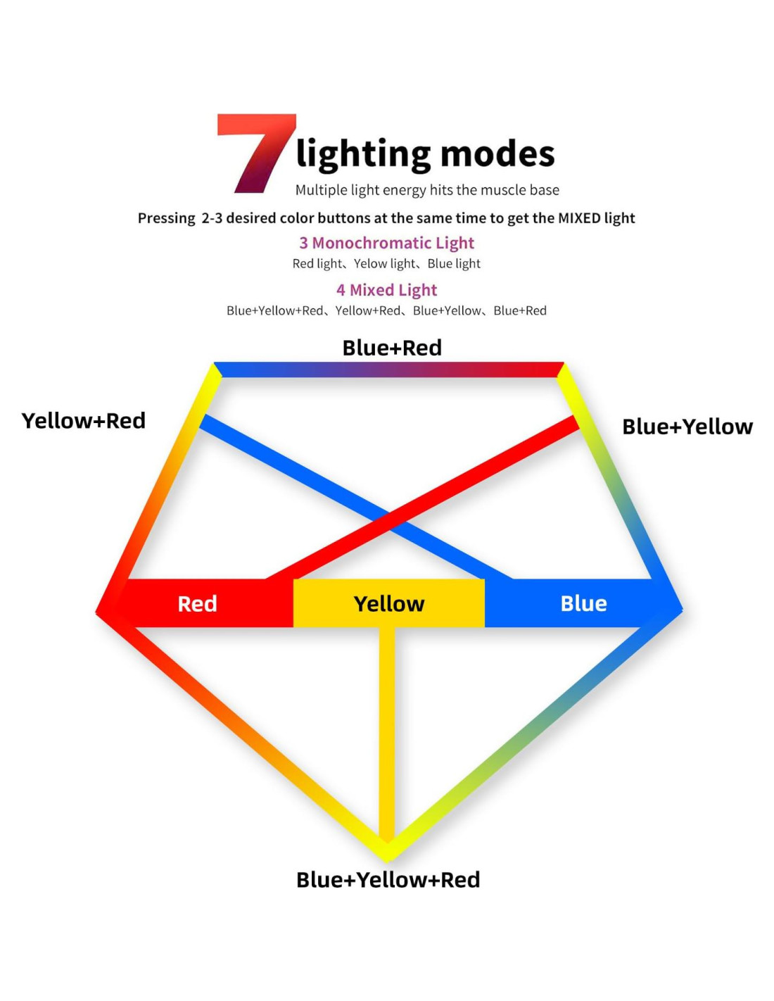 - 7 en 1 Color con Tres Modos de Luz: Presionando el botón de color deseado y después de 3 segundos sonará un beep y se encenderá, puedes presionar 2-3 botones de color deseado al mismo tiempo para obtener los colores COMBINADOS