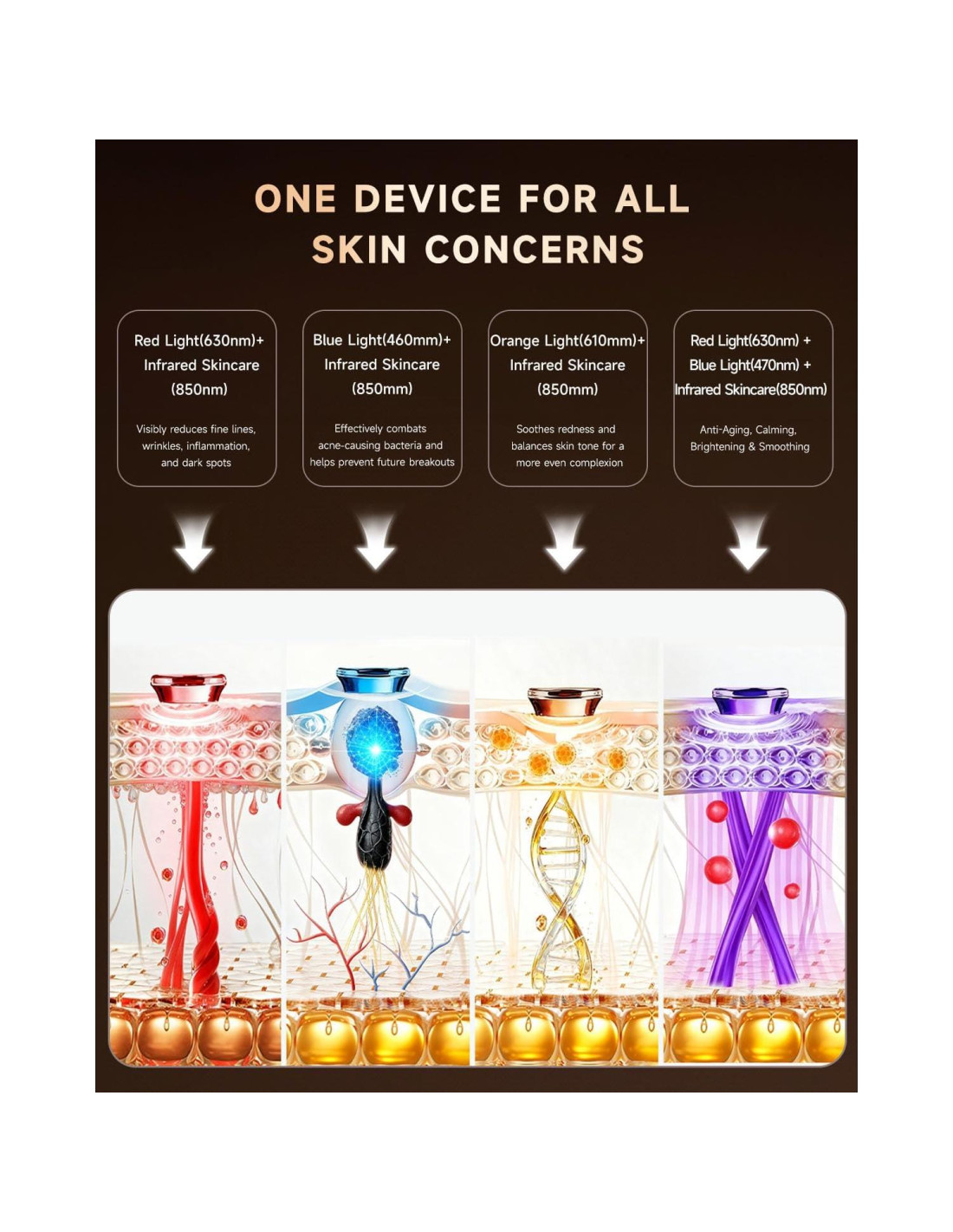 - Terapia de Luz Roja para la Cara - Esta máscara de terapia de luz roja para la cara cuenta con 272 LED que entregan 50mW/cm de densidad de energía, el rango más seguro y efectivo (30-50mW/cm) para la piel humana. Longitudes de onda clínicamente probadas (630nm rojo + 850nm infrarrojo cercano) penetran profundamente para aumentar el colágeno, suavizar arrugas y rejuvenecer la piel. Incluye 4 modos de tratamiento: Antienvejecimiento, Acné, Iluminación y Suavizado