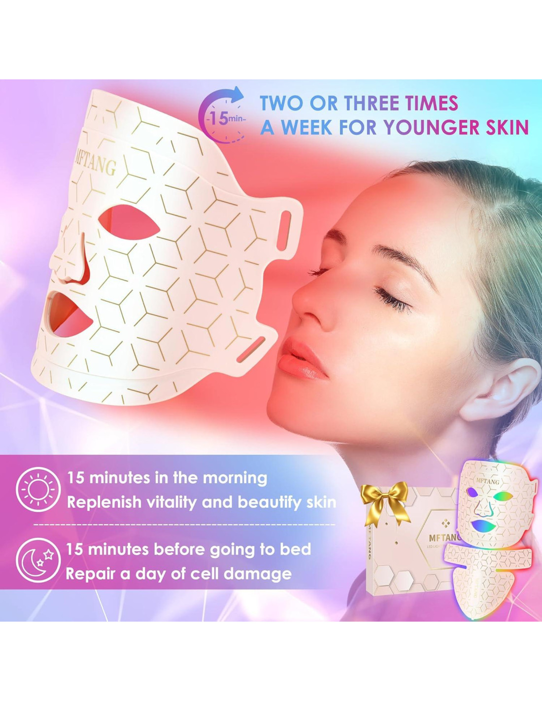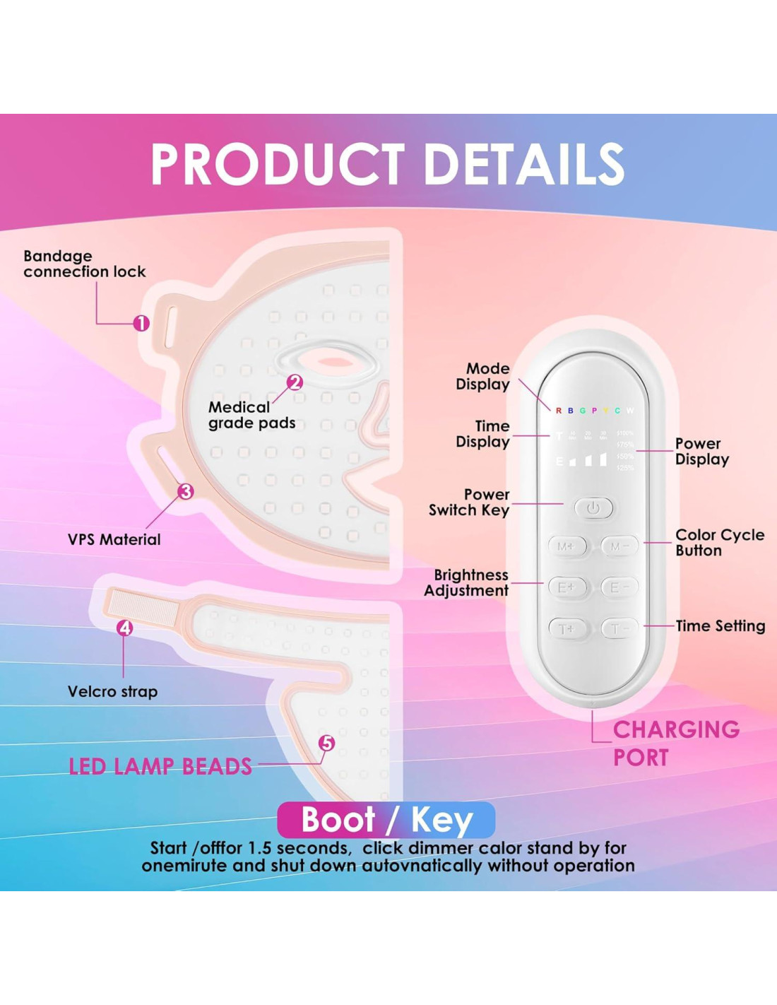 - Opciones de Color Versátiles: Nuestra máscara para la cara y el cuello ofrece siete colores para abordar diversas preocupaciones de la piel, al usarla, puedes elegir la longitud de onda que te convenga