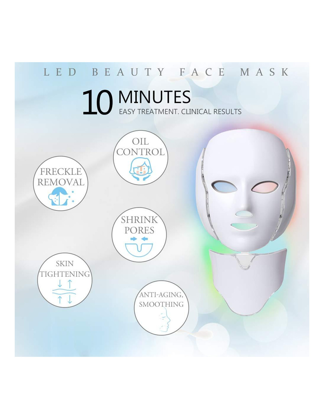 7 colores en una máscara de terapia de luz LED facial, cada color tiene su efecto, puede satisfacer sus diversas necesidades de belleza, puede tratar a fondo la piel para recuperar la apariencia juvenil.