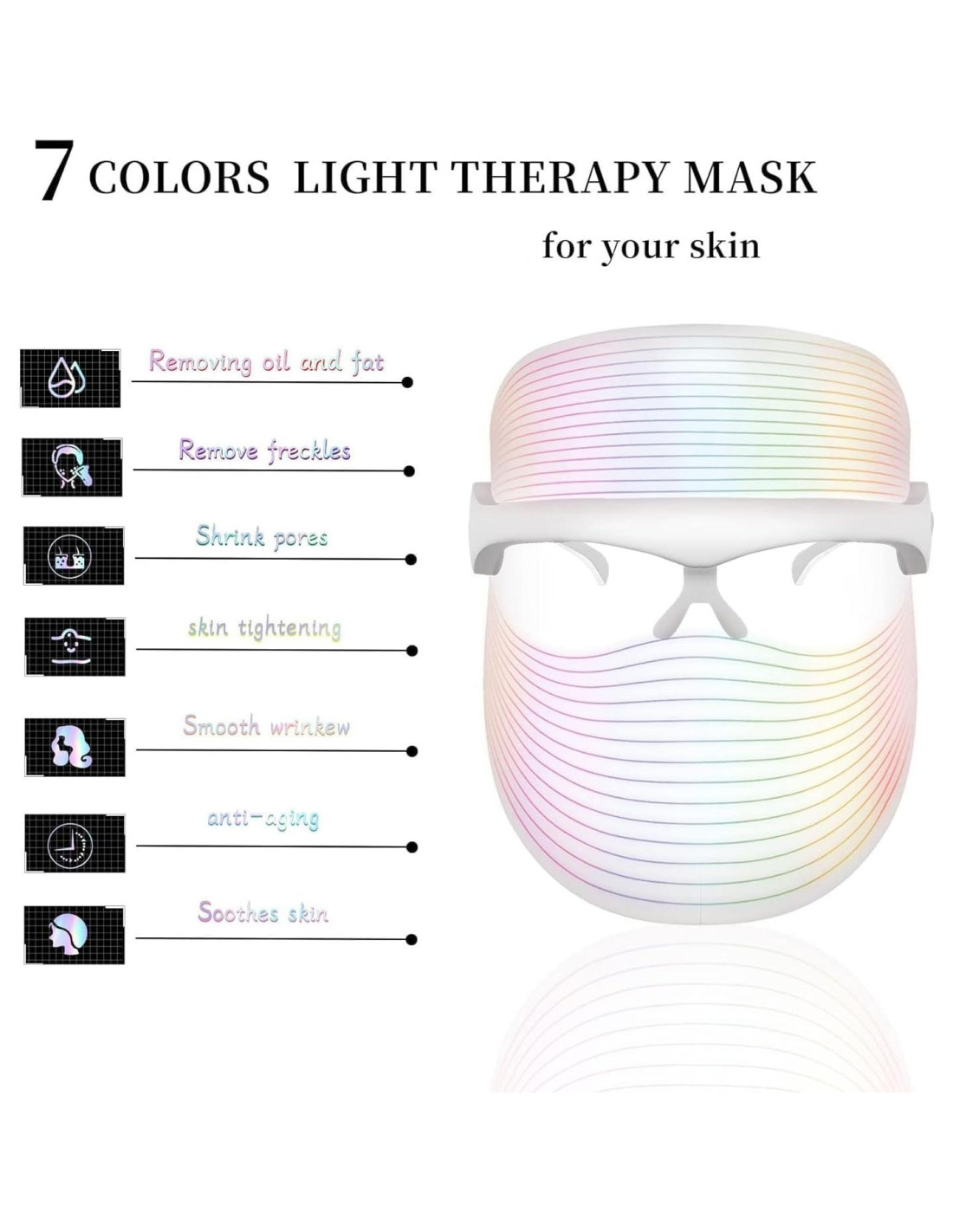 - 7 colores de luces LED Rojo, azul, naranja, verde, púrpura, púrpura claro y cian. 7 funciones de cuidado de la piel.
