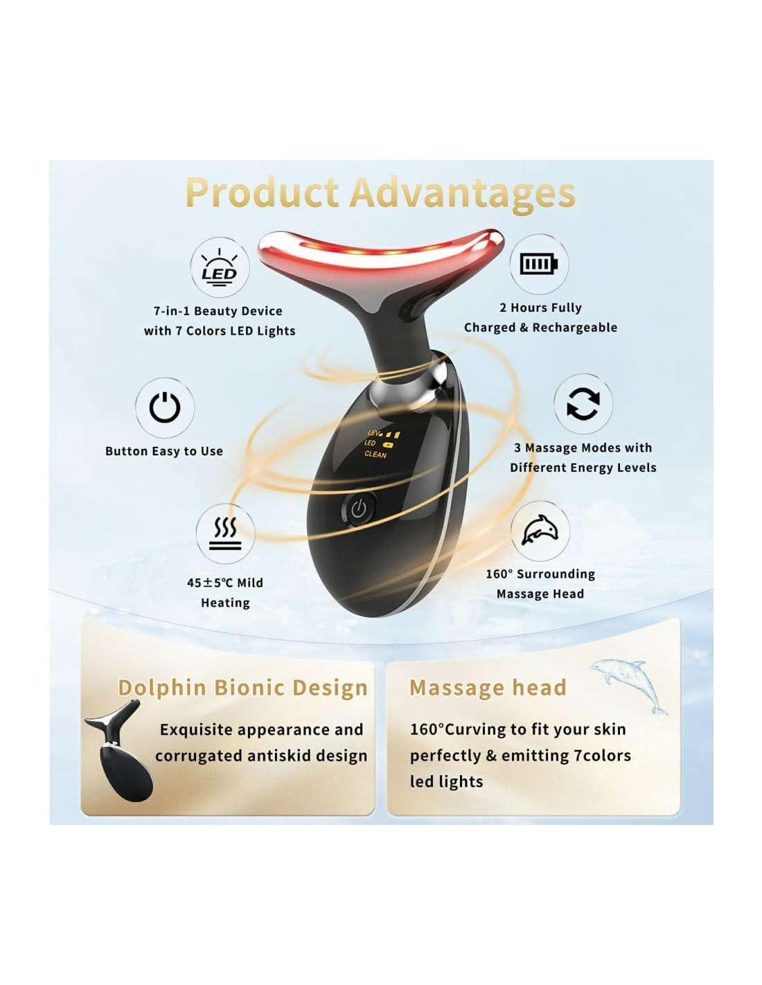 - [7 Colores de Cuidado de la Piel] El masajeador facial tiene 7 modos de luz LED diferentes con varias funciones de cuidado de la piel que son efectivas y multifuncionales. No solo mejorará tus resultados de cuidado de la piel, sino que también hará que tu piel sea más suave y tersa, aumentará la elasticidad, minimizará las papadas y mantendrá un cutis saludable y radiante.
