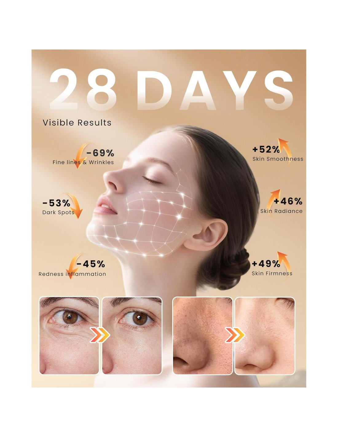 - Rejuvenecimiento Profundo Potenciado por NIR: Impulsada por terapia de luz infrarroja cercana (850nm), la máscara penetra más profundamente para ayudar a mejorar la firmeza y promover un brillo juvenil. Ya sea que tu enfoque sea el anti-envejecimiento o la revitalización, esta máscara de luz roja apoya tus objetivos de belleza natural