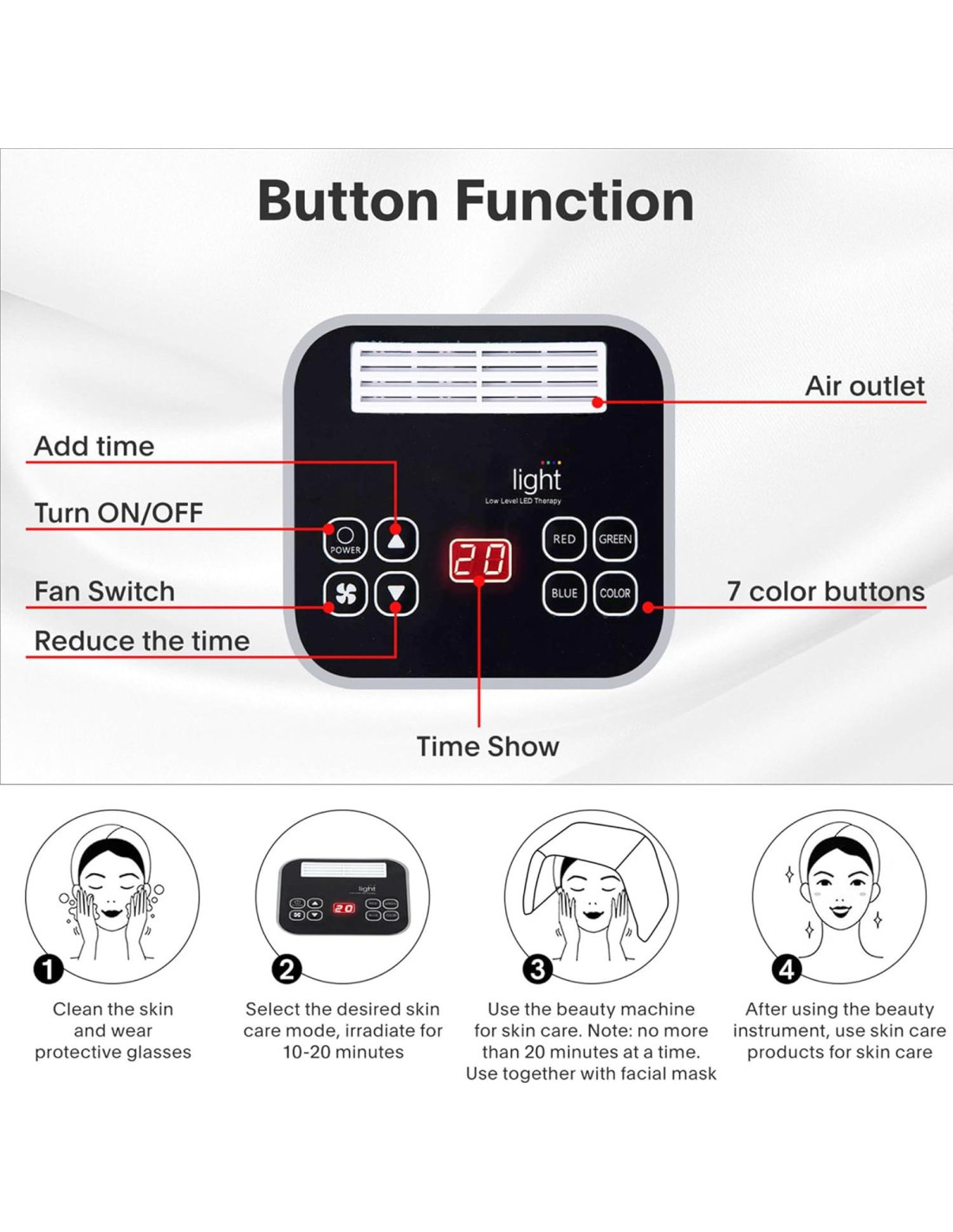 - Función de Terapia de Luz de 7 Colores La máscara de belleza LED tiene 7 colores de luz para elegir, realiza un cuidado de la piel tridimensional, suave y completo.
