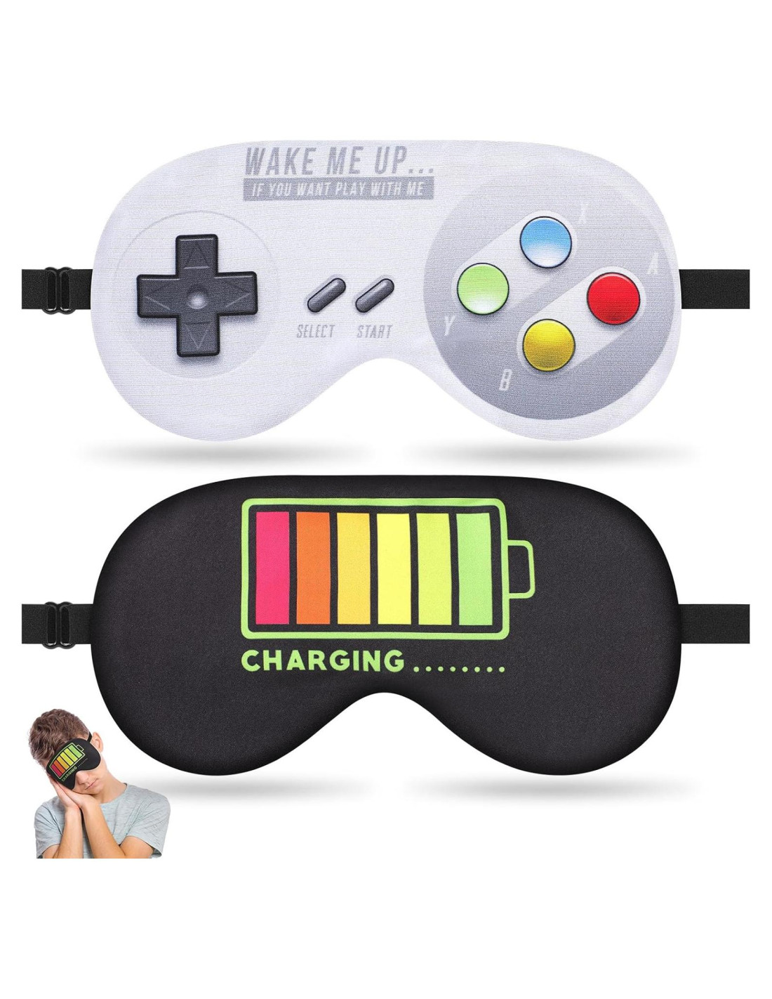 - Gran Idea de Regalo: 2 máscaras de sueño con patrón de juego son un gran regalo para padres, chicos, hombres, amigos, esposos o cualquier persona que desee un sueño profundo e ininterrumpido para Navidad, cumpleaños, etc. Cuando reciban tus regalos y cuidados pensativos, se sentirán amados.