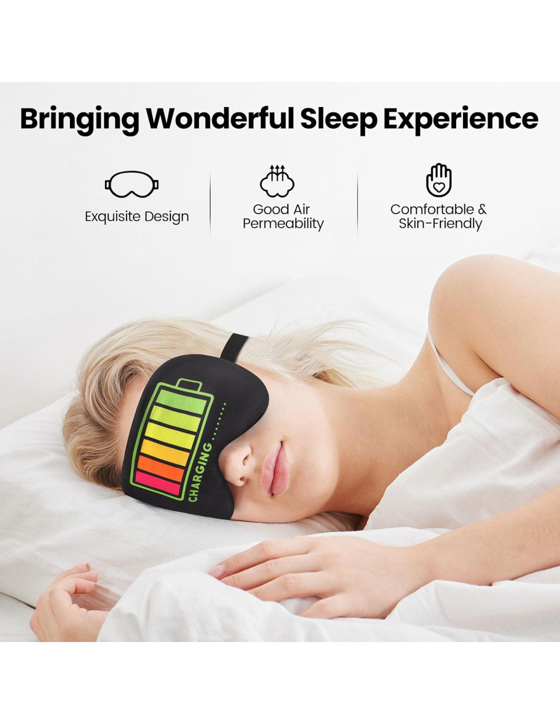 - Ajustable: La máscara para dormir tiene una correa elástica ajustable que puedes ajustar para que se ajuste a tu cabeza en la posición más cómoda sin moverse o caerse mientras duermes. Nuestros antifaces nocturnos son adecuados tanto para niños como para adultos.