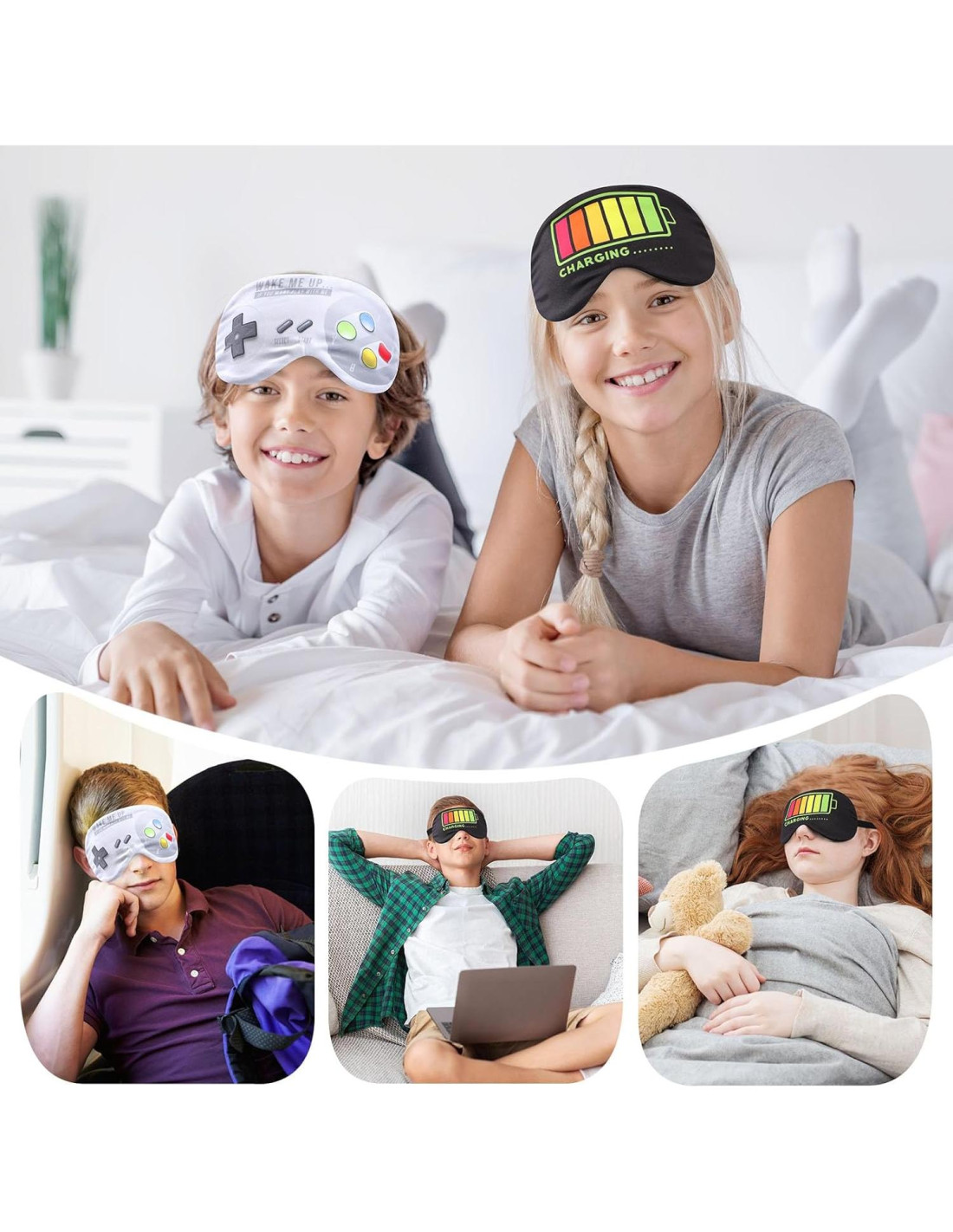 - Aplicación: La máscara de ojos bloqueadora de luz es adecuada para viajar, en casa, en hoteles, acampando, en tren, jugando o cualquier lugar donde la luz interfiera, permitiéndote disfrutar de un sueño ininterrumpido, profundo y pacífico. Las divertidas máscaras de sueño son geniales para fiestas de pijamas y jugar.