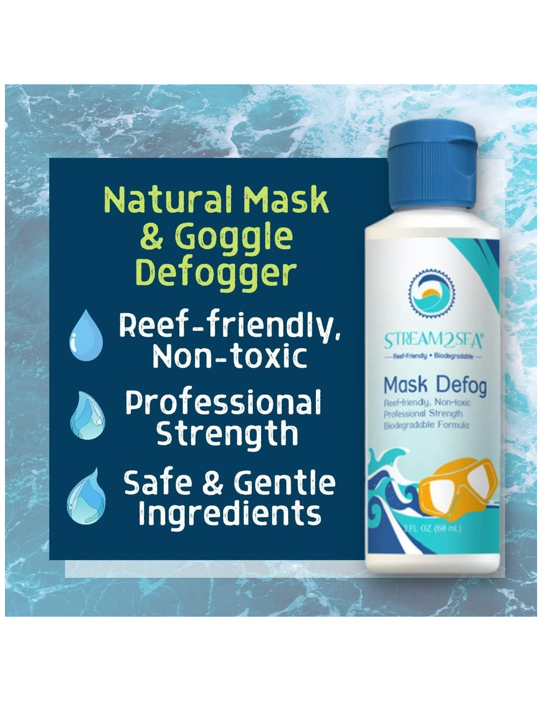 - Todo Natural, Seguro para el Océano; Libre de Alcohol y Amoníaco; Como todos nuestros productos, nuestro Antiniebla ha sido probado y demostrado seguro para humanos, vida marina de agua dulce y salada, lo que lo hace 100% Seguro para los Arrecifes para usar en cualquier cuerpo de agua.