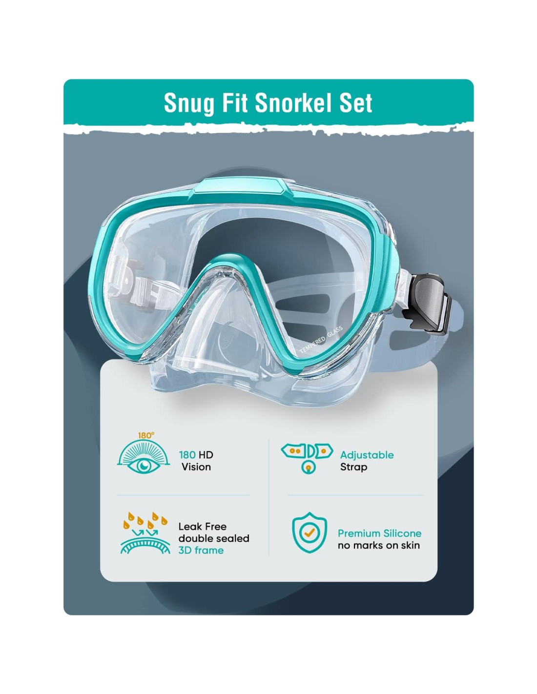 - MÁSCARA DE SNORKEL CON VISIÓN CRISTALINA: El objetivo de hacer snorkel es ver la vida submarina y sin una visión clara, eso es imposible. La lente de vidrio templado de la máscara de snorkel está tratada con tecnología antivaho, lo que puede prevenir eficazmente que se empañe y proporcionarte una vista vívida bajo el agua. Al mismo tiempo, el vidrio templado resistente a impactos es bueno para soportar la presión del agua profunda y proporcionar protección. La seguridad es lo primero.