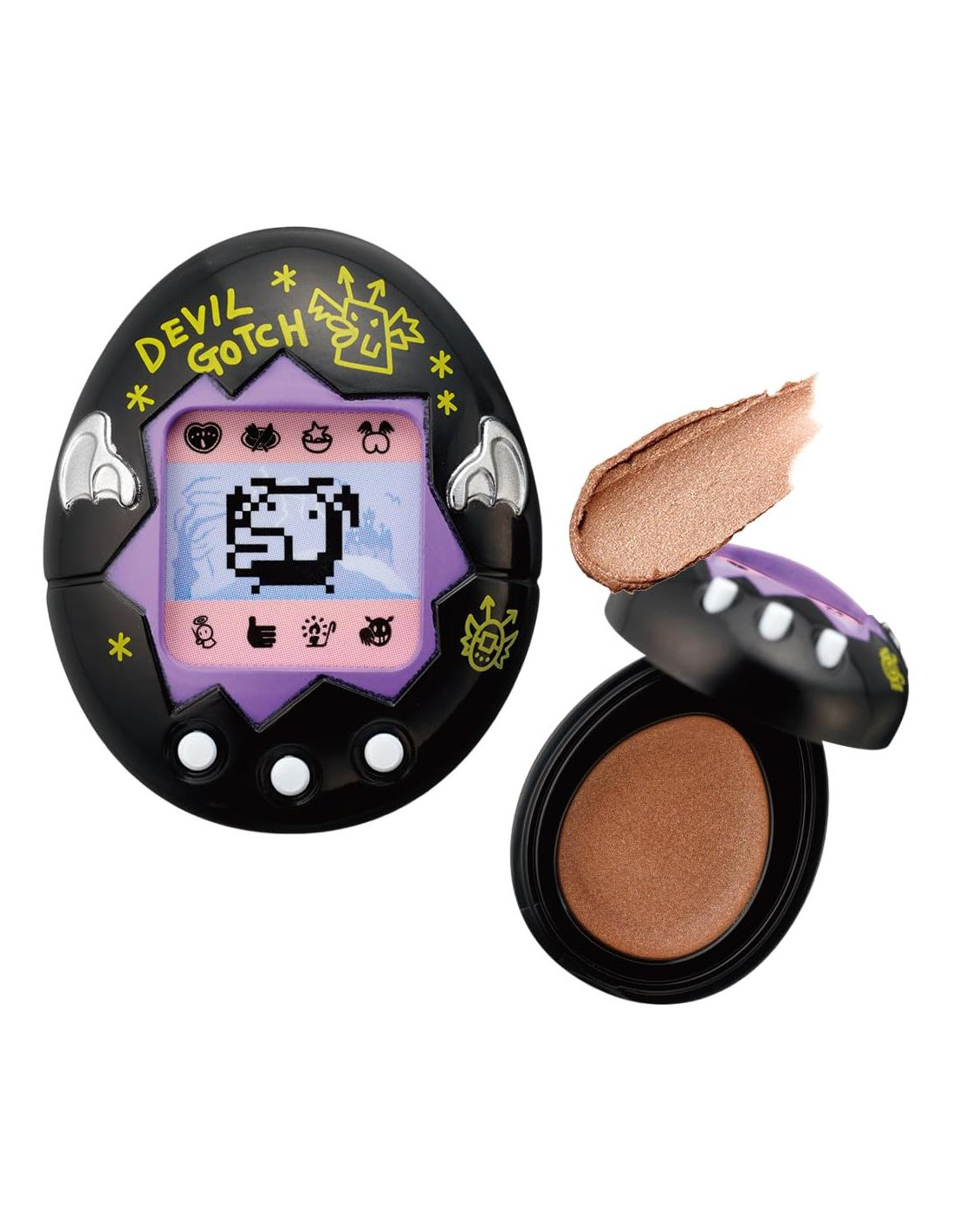 - Este cosmético compacto viene en un estuche Tamagotchi negro de diablillo que lo convierte en el accesorio más lindo