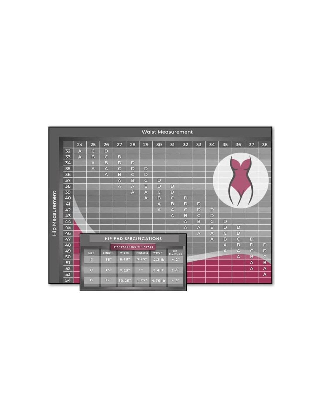 El tamaño de las almohadillas de cadera Skinister se basa en las dimensiones de tu cintura y caderas.