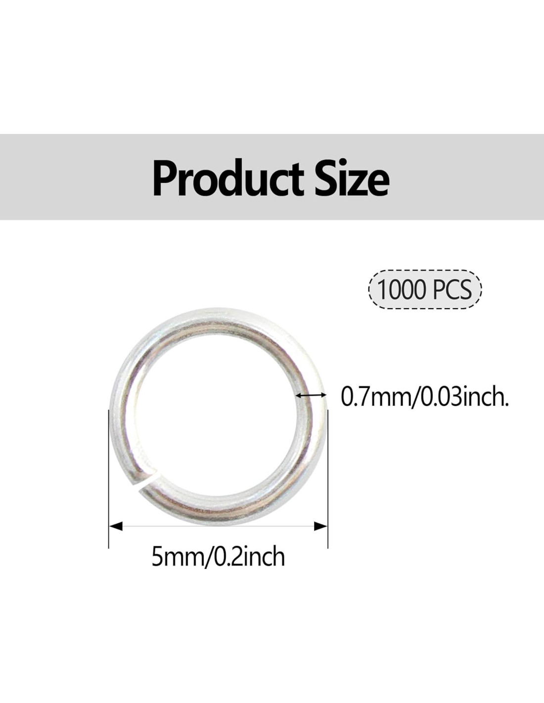 - Qué hay en el paquete: Recibirás 1000pcs anillas de salto. Diámetro: 5mm/0.2 pulgadas (5mm). Grosor: 0.7mm/0.03 pulgadas (0.7mm).