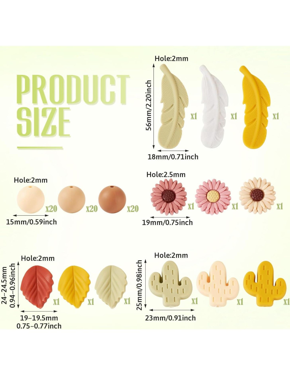 - Amplia Aplicación----Estas versátiles perlas de silicona son adecuadas para una amplia gama de aplicaciones de manualidades, incluyendo decoraciones de bolígrafos, embellecimientos de llaveros, acentos de cintas y fabricación de joyería. La variedad de formas (margarita, hoja, cactus, pluma, redonda) ofrece oportunidades creativas para diferentes proyectos de manualidades.