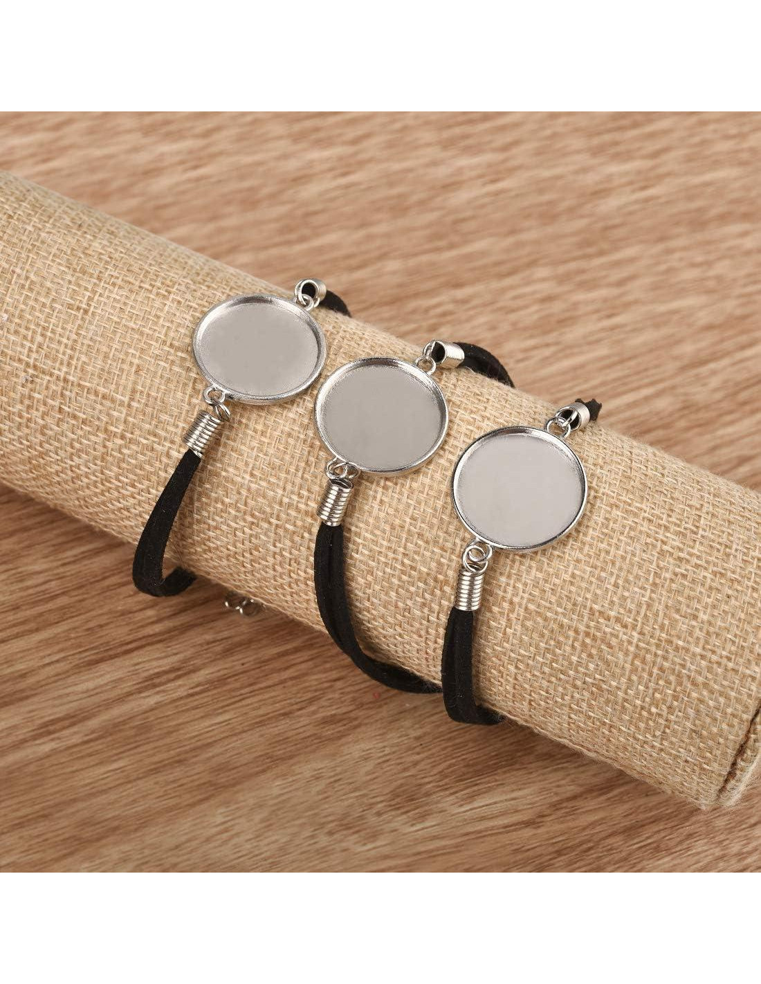 - LO QUE OBTIENES - 20Pcs pulsera de cuero negro en blanco (Base Plateada) y 20Pcs azulejos de cúpula de vidrio de 20mm