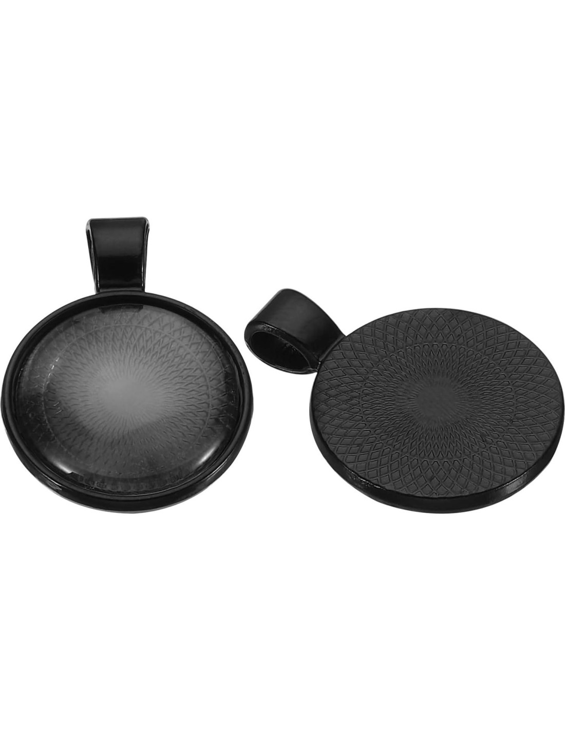 - Material: Aleación de Zinc, Vidrio; Color: Negro, Claro; Diámetro Interno: 20mm / 2.0 cm; Lista de Paquete: 30 Conjuntos x Bandejas de Colgante con Cabujones de Vidrio