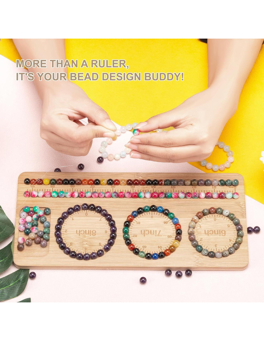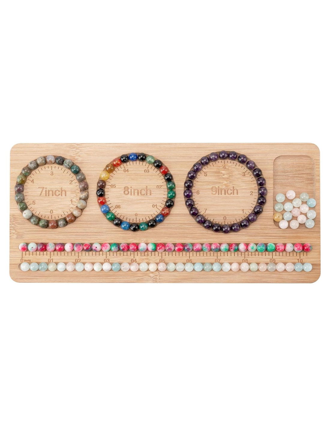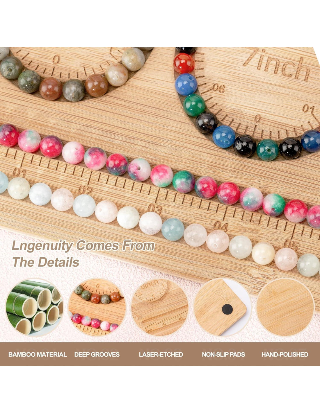 - [MATERIAL DE BAMBU NATURAL] El tablero de perlas para pulseras utiliza material de bambú natural, que es ecológico, hipoalergénico y resistente. Pulido manual para hacer la superficie suave y sin astillas. Ten en cuenta que el bambú es un producto natural y habrá textura natural en la superficie.