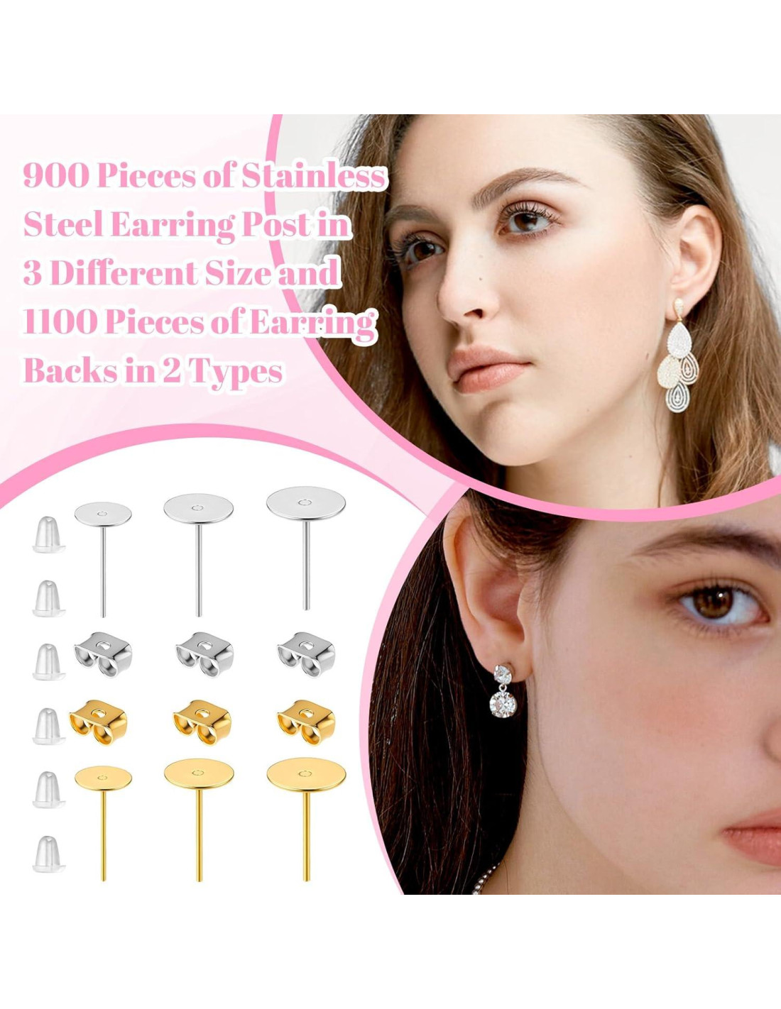- Componentes incluidos: 2000 pcs Hallazgos de Pendientes con tapones de oído transparentes