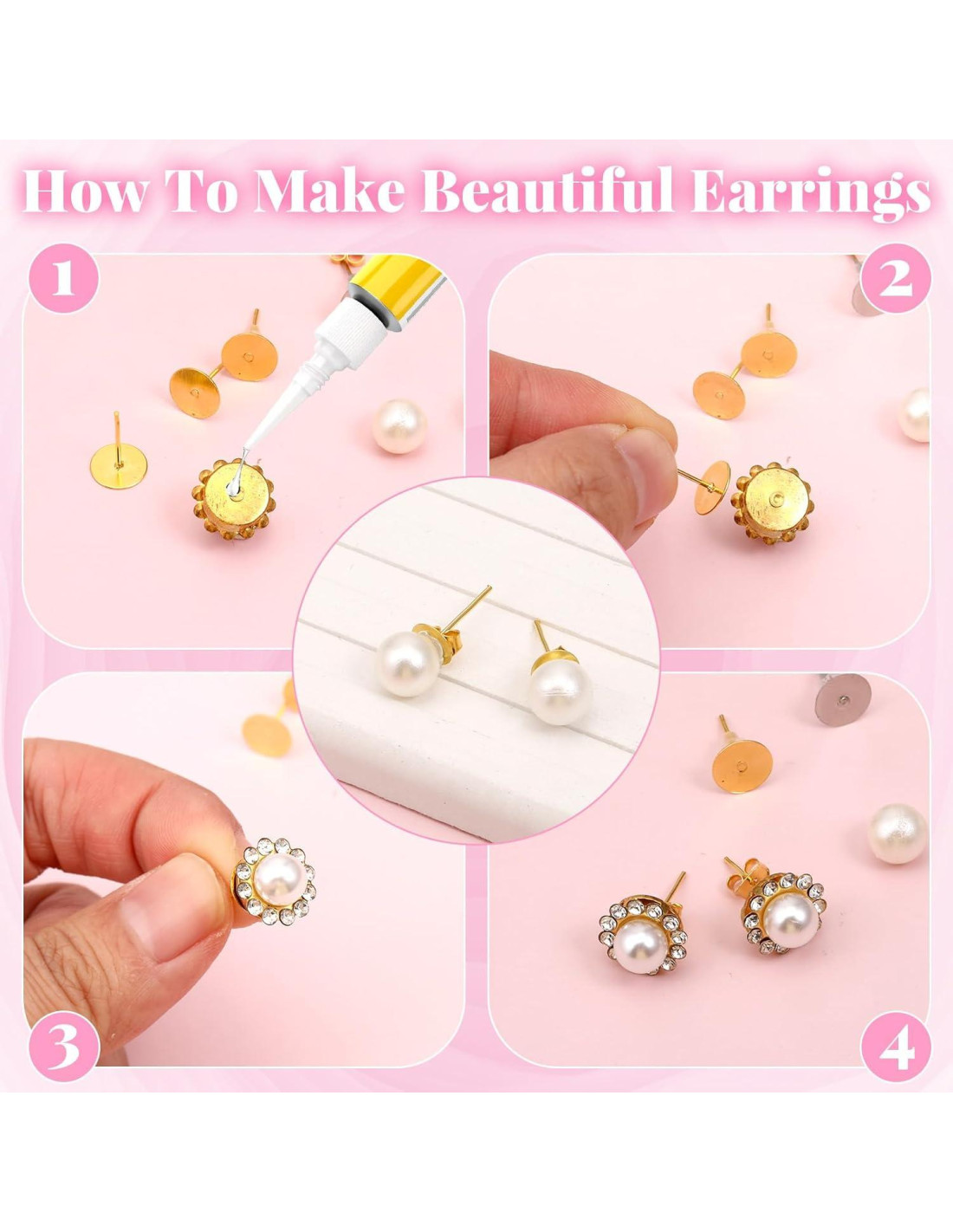 - Fácil de Usar: Este exquisito accesorio de pendiente tiene 2 colores, que son oro y plata, es fácil de combinar. Al usarlo, puedes usar pegamento para pegar ligeramente los artículos de tu elección en la superficie del pendiente