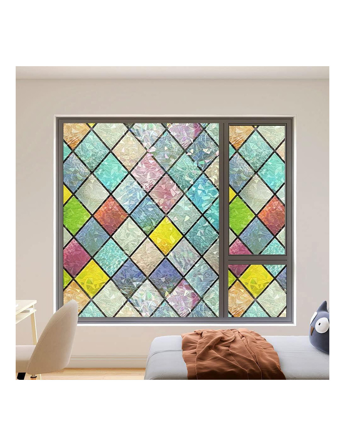 - [Amplia Gama de Aplicaciones]: 44.5 cm de Ancho por 200 cm de Largo por Rollo. La película para ventanas tiene un patrón de cuadros de cristal colorido. Es fácil de aplicar y se utiliza ampliamente para ventanas y puertas de vidrio en Baños, Balcones, Salas de Estar, Dormitorios, Oficinas, hoteles, Cocinas, etc.