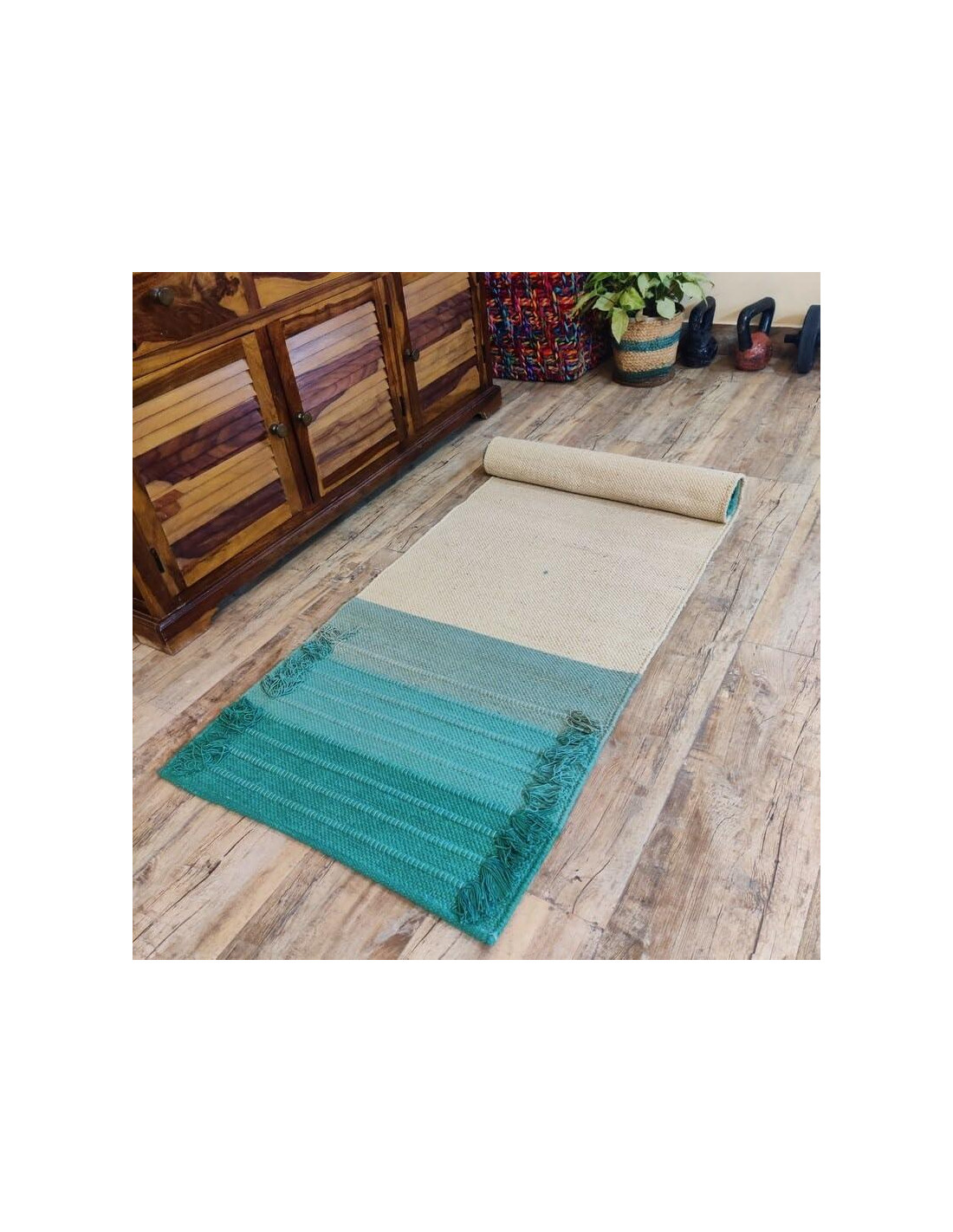 La Alfombra de Yoga de Algodón Orgánico es un accesorio premium y ecológico diseñado para mejorar tu práctica de yoga mientras minimiza el impacto ambiental. Elaborada con cuidado, es una alfombra tejida a mano que combina los beneficios naturales del algodón orgánico con la funcionalidad de una alfombra de yoga tradicional. Hecha de fibras de algodón 100% orgánico, esta alfombra está libre de productos químicos nocivos, pesticidas y materiales sintéticos que a menudo se encuentran en alfombras de yoga convencionales. El algodón orgánico se cultiva utilizando prácticas agrícolas sostenibles que priorizan la salud del suelo, la conservación del agua y el bienestar de los agricultores y trabajadores. La construcción tejida a mano de la alfombra añade un toque único y asegura durabilidad. Artesanos calificados tejen meticulosamente las fibras de algodón, creando una superficie resistente y de apoyo para tu práctica de yoga. La textura similar a una alfombra ofrece un agarre natural, ayudando a prevenir deslizamientos y mejorar la estabilidad durante las posturas y movimientos. La Alfombra de Yoga de Algodón Orgánico proporciona un excelente acolchado, haciéndola adecuada para varios estilos de yoga, meditación y otros ejercicios en el suelo. La superficie suave pero resistente ayuda a acolchar las articulaciones, reduciendo la tensión y proporcionando una experiencia cómoda. Además de sus cualidades funcionales, esta alfombra de yoga encarna un enfoque ecológico hacia el bienestar. Al elegir una alfombra de algodón orgánico, contribuyes a la preservación del medio ambiente y apoyas métodos de producción sostenibles. Es una elección consciente que se alinea con tu compromiso tanto con tu bienestar personal como con la salud del planeta. Ya seas un principiante o un yogui experimentado, la Alfombra de Yoga de Algodón Orgánico ofrece una mezcla armoniosa de comodidad, estabilidad y sostenibilidad. Con su diseño tejido a mano y materiales ecológicos, es una hermosa y consciente adición a tu espacio de práctica de yoga.