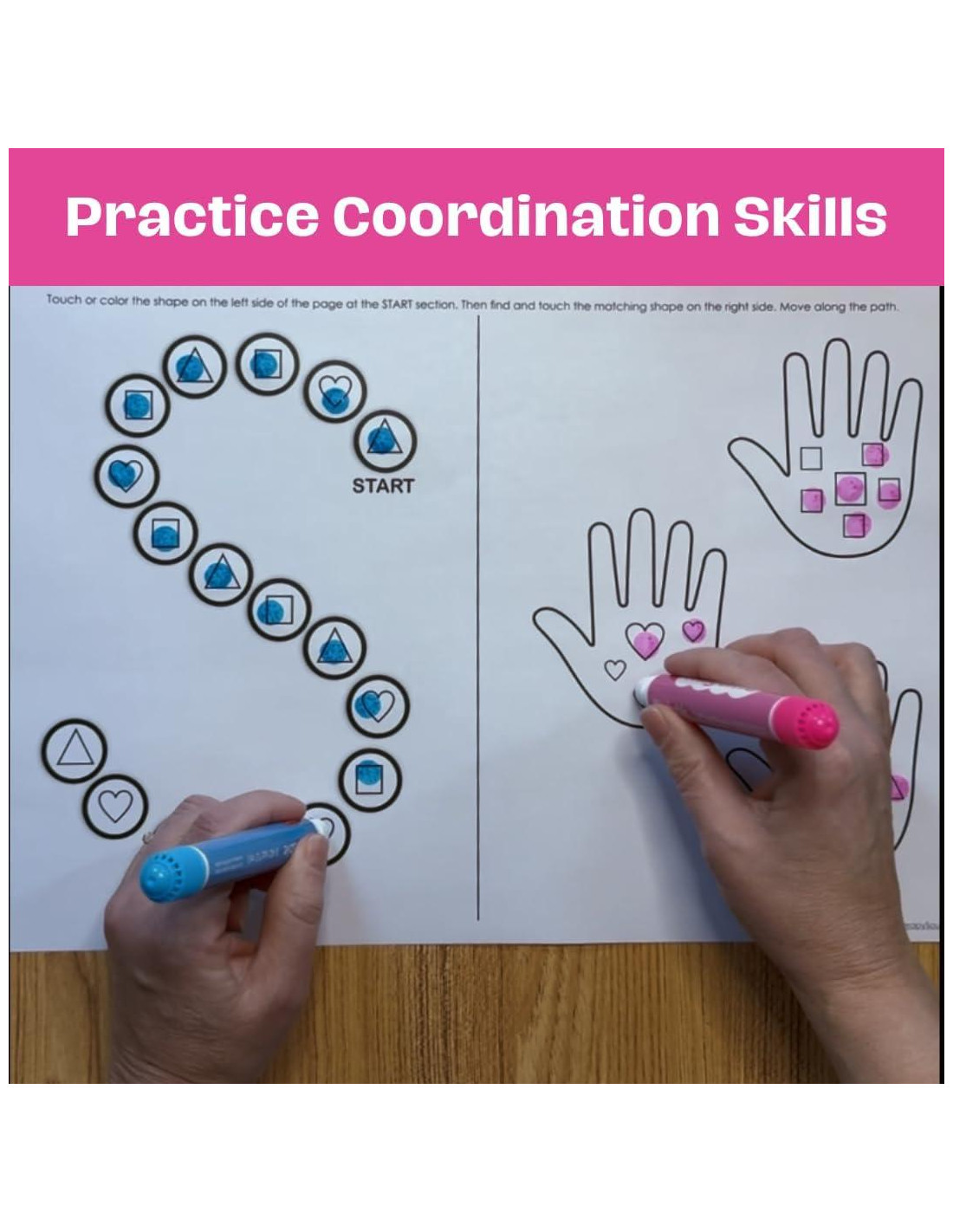 - PRACTICA UNA VARIEDAD DE HABILIDADES: Enfoque, escaneo visual, atención a los detalles, coordinación bilateral, planificación motora, discriminación derecha/izquierda, flexibilidad cognitiva, seguir instrucciones y más!